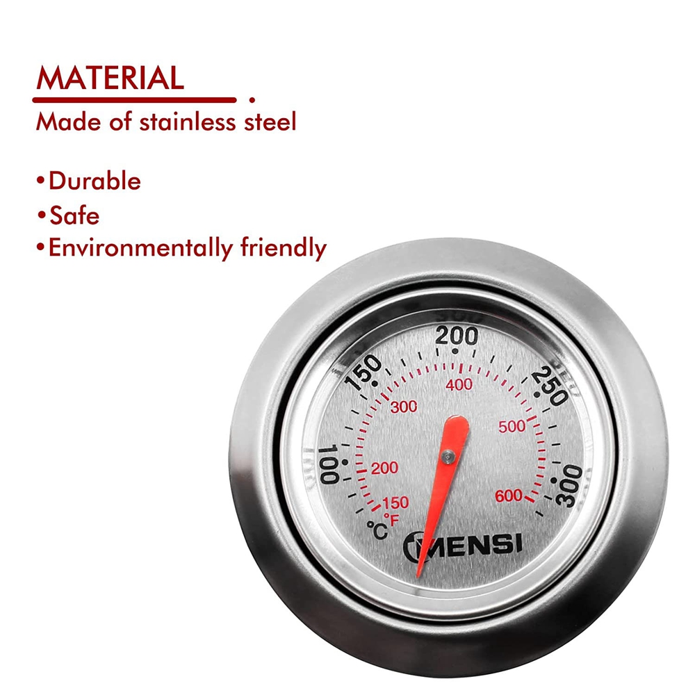 • Features:  1,Replacement for Weber Q, Traveller Thermometer and Bezel Kit, Weber Genesis Grill Replacement Thermometer Built-in lid thermometer.  2,Size: Base 2.45", Shaft probe 1.5", Thermometer external diameter 1.82"  3, Temperature resistance 150-600°F.  4,With the built-in thermometer, you can know the indoor temperature at any time, so you can adjust the temperature accordingly to prevent combustion.  5,The thermometer decorative base plate is very suitable for holding the thermometer and can be disassembled if not required.  6,Made of high quality stainless steel, it is more sturdy and durable.
