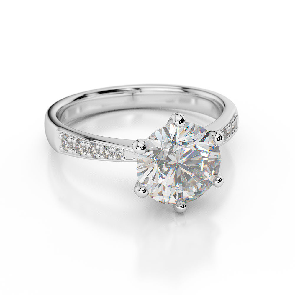 Diamond Ring Sidestones 2.85CTW (Center Stone 2.5ct) in 18K White Gold. Free Shipping - 30 Day Returns - Appraisal Certificate Included. This beautifully designed diamond ring has been meticulously crafted to perfection. Exclusively designed by the Brillianteers Diamond Studio guaranteeing its quality and excellence. Each stone is hand picked and inspected making sure that it has the ultimate sparkle and brilliance. Our unique classic designs will be sure to draw compliments anywhere you go and will be cherished for a lifetime.