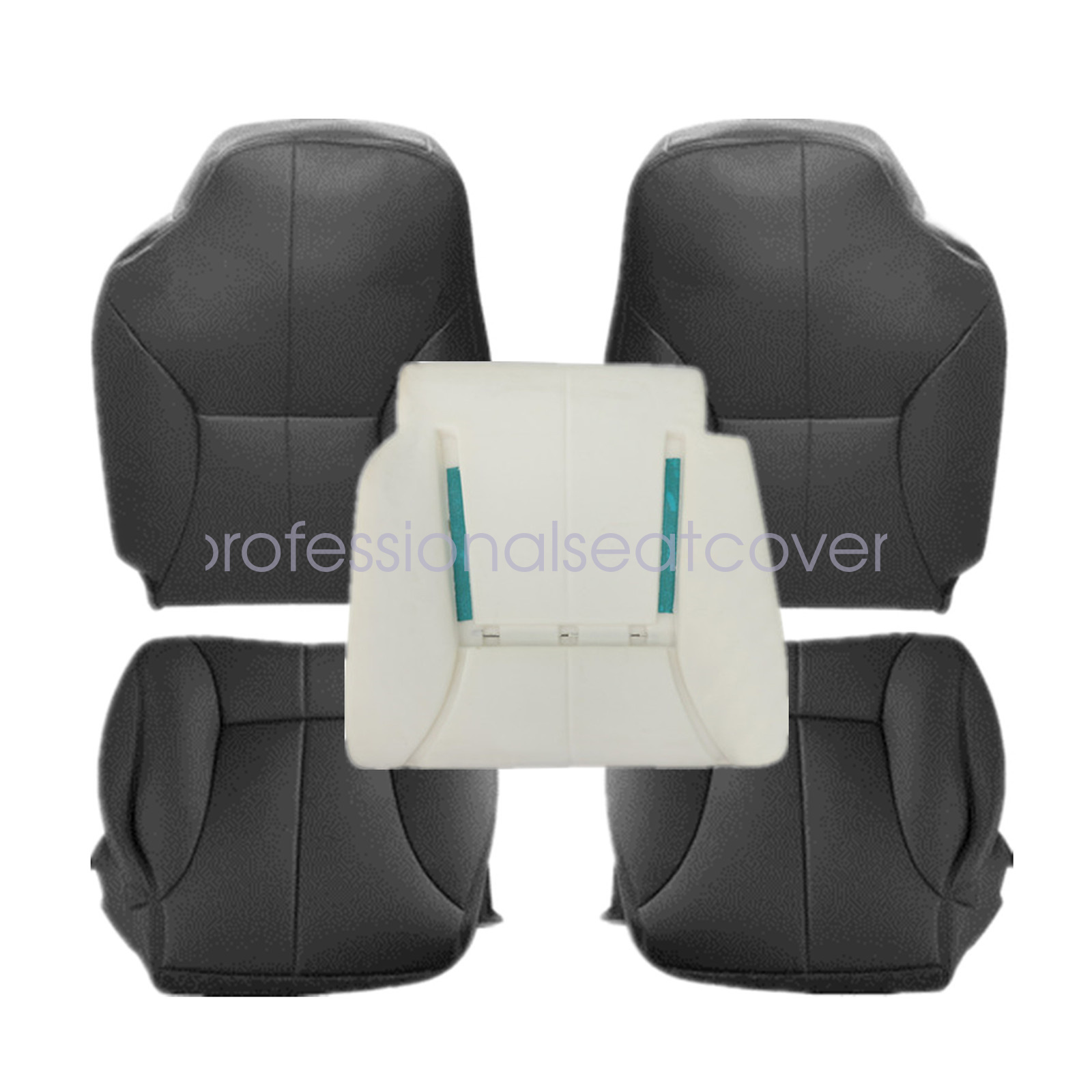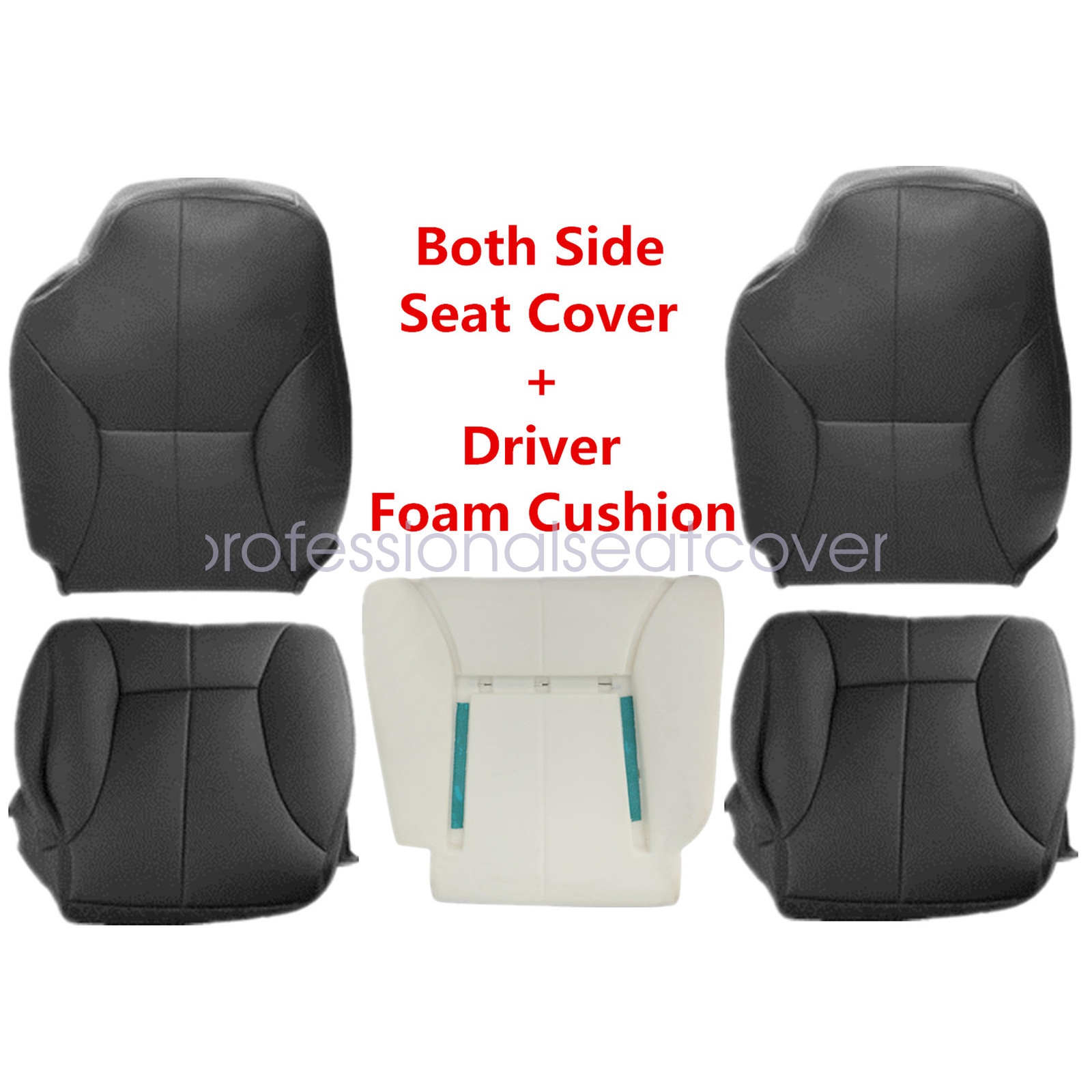 Replacement For 1998 1999 2000 2001 2002 Dodge Ram 1500 2500 3500 Driver Passenger Leather Seat Cover & Foam Cushion Black