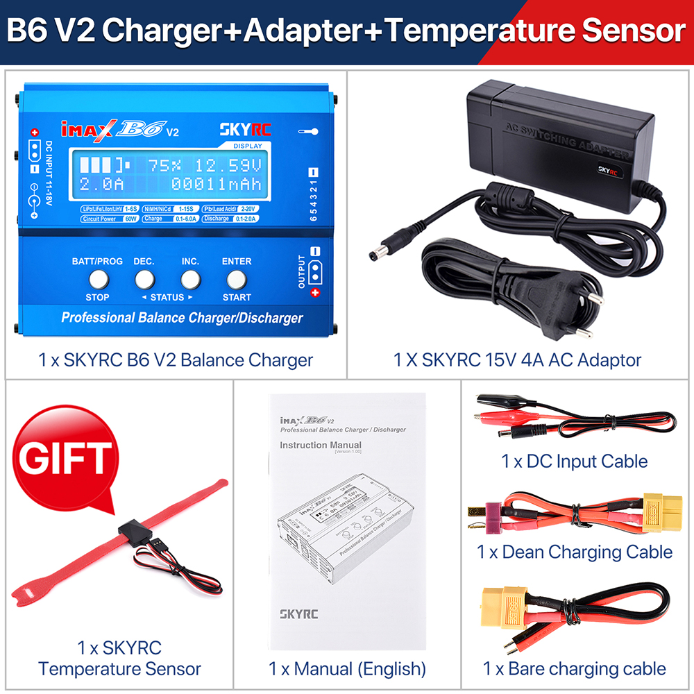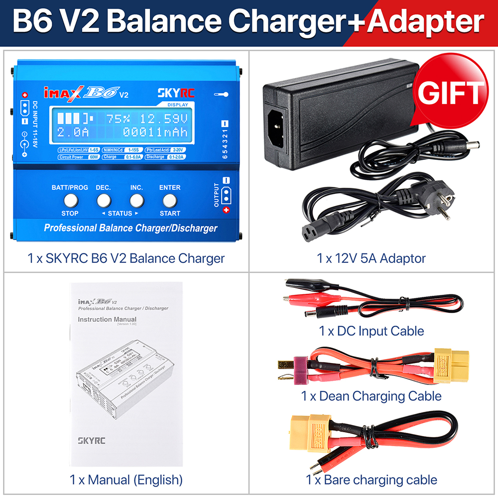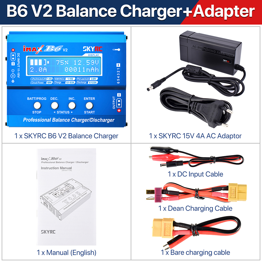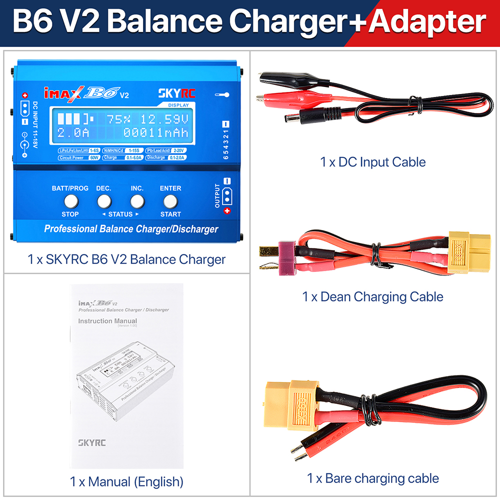 SKYRC B6 V2 is a DC input high-performance, micro-processor controlled charge/discharge/DC/DC converter with battery management suitable for