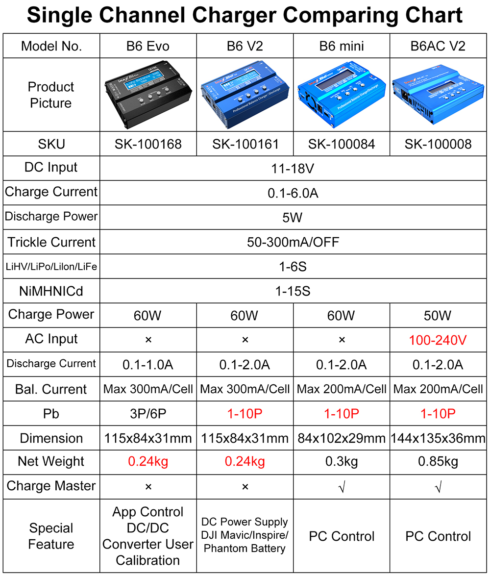 NiMH/NiCd/LiPo/LiHV/LiFe/Li-Ion/Pb/DJI: 100-50000mAh