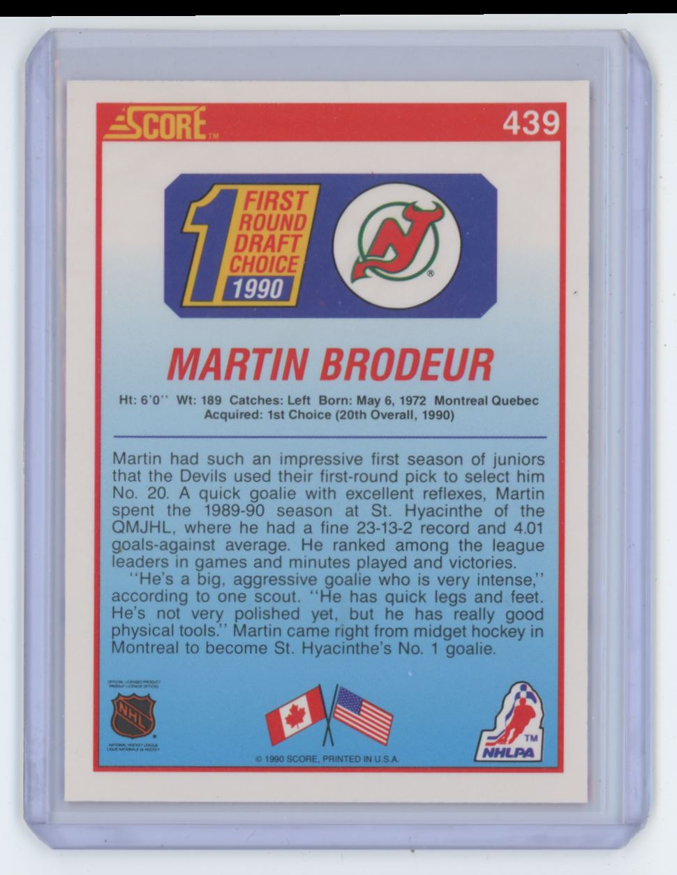 | Description: | Martin Brodeur | | Category: | Hockey | | Year: | 1990 | | Product: | Score Rookies | | Team: | Hockey Cards | | Card Number: | 439 | | Dimensions: | 4" x 3" |