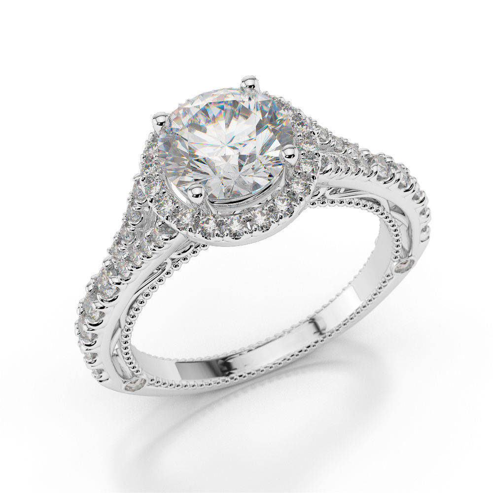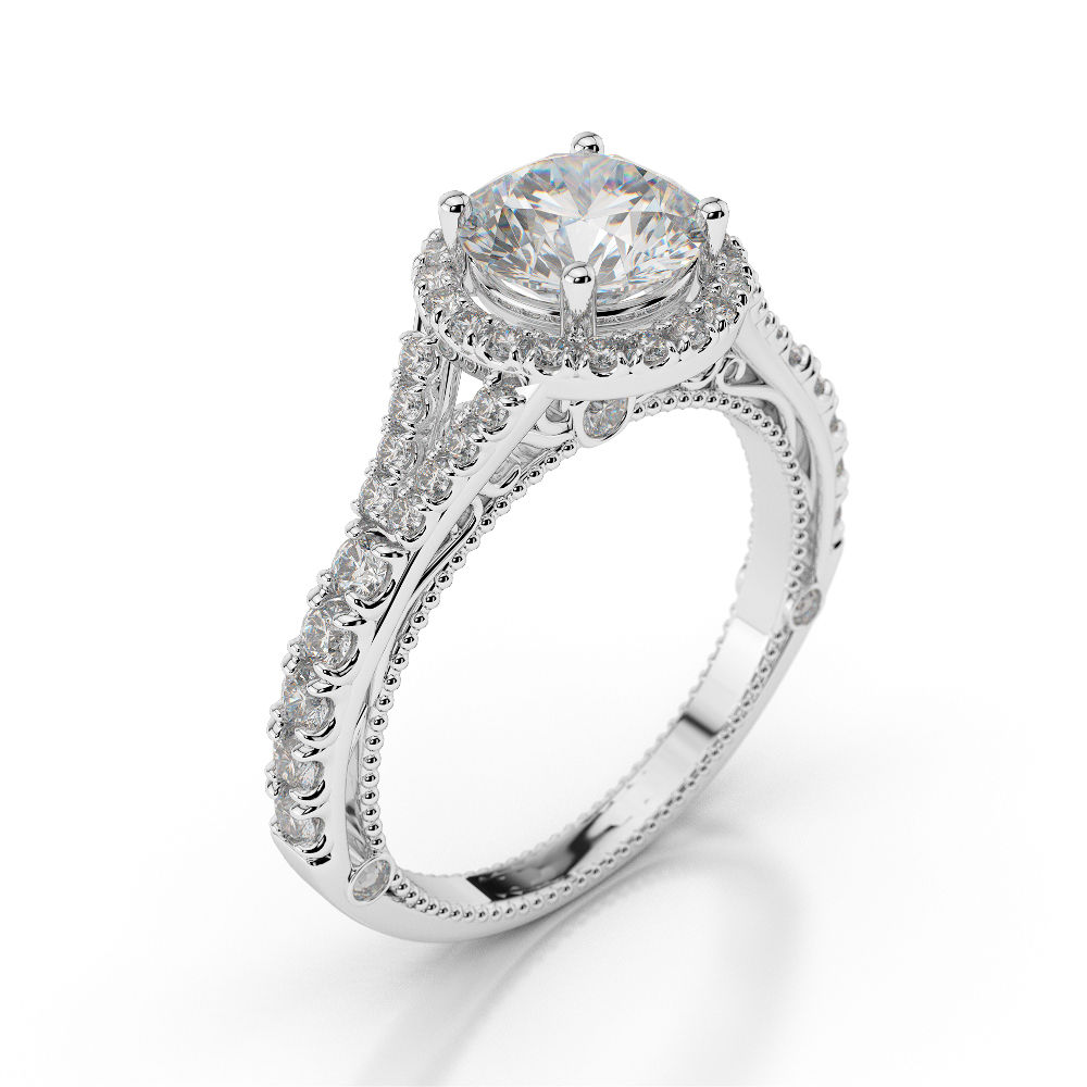 1.40 CT F/SI1-SI2 Elegant Round Cut Diamond Engagement Ring 14K White Gold