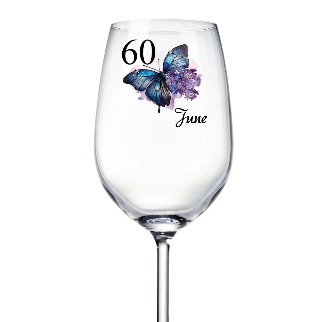 Personalised 60th Birthday Butterfly Wine Glass Gift For Her ALL-10
