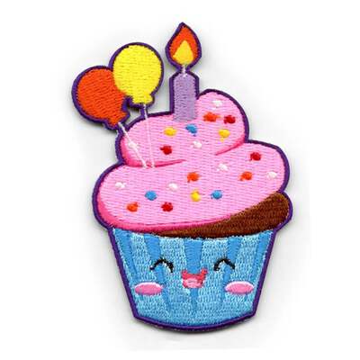Add this kawaii birthday cupcake embroidered patch to your growing food collection.
