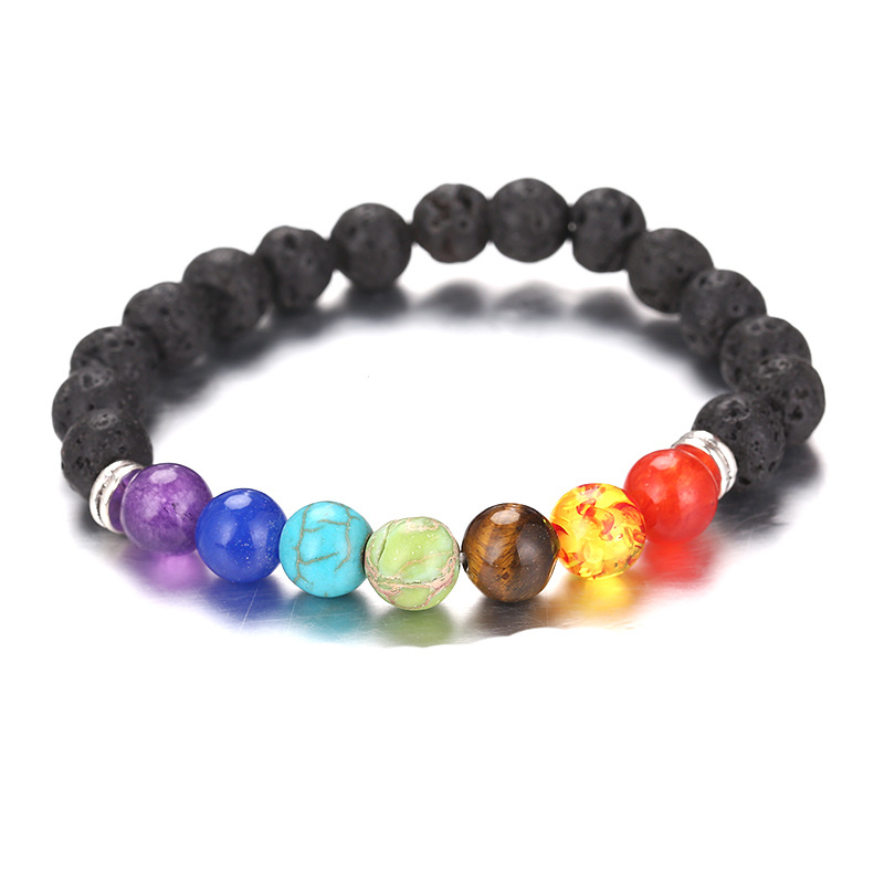 20PCS Elastic Stretch Lava With Seven Chakra Gemstone Beads Bracelet Unisex
