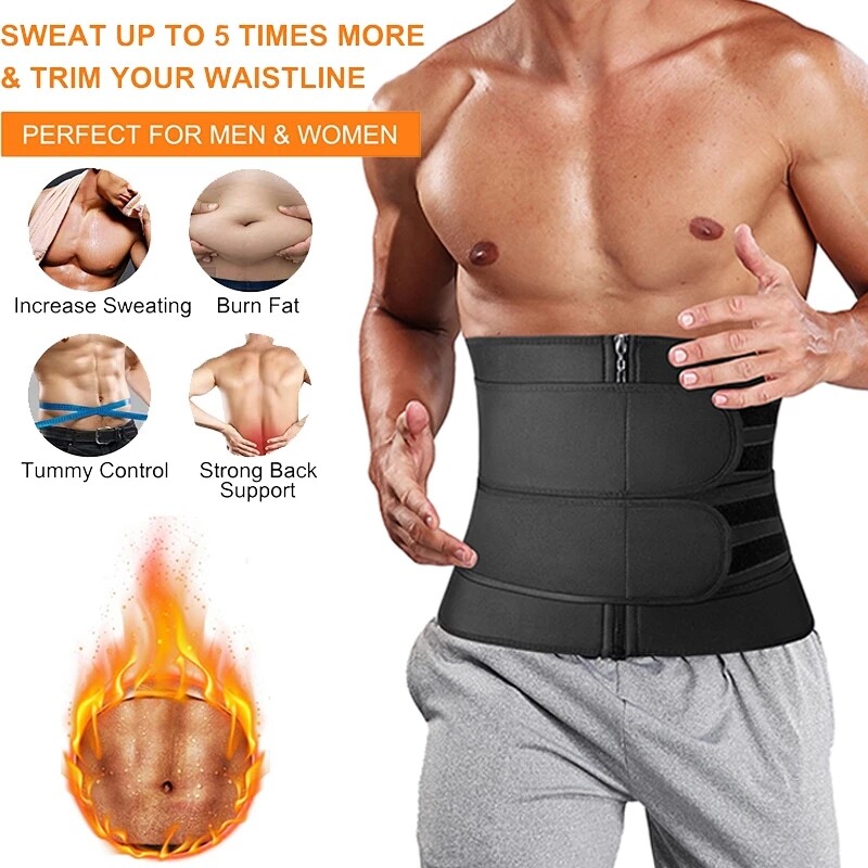 đ„ăWAIST FAT BURNER WITH 3 BELTS & ZIPPERă If you want extra tight coverage on the lower abdomen, exercise belts definitely do the job, because most waist trainers only have the extra cinching strap on the middle of the abdomen. As soon as you put belly fat burner for men in, belly fat for men holds your belly very tight and you could feel your posture straighten up, and shortly after, you could feel your core sweating out. Belt shaper for men will help you sweat around the mid section.