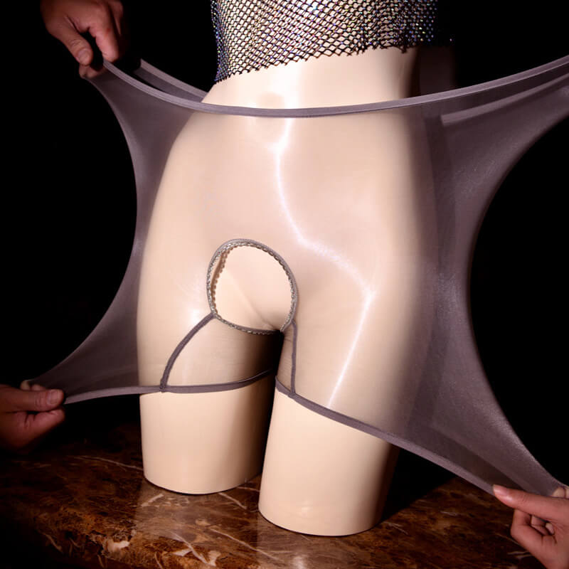 Plus Size Women Oil Shiny Glossy Panties Sheer See-through Boxer Shorts Free Cut