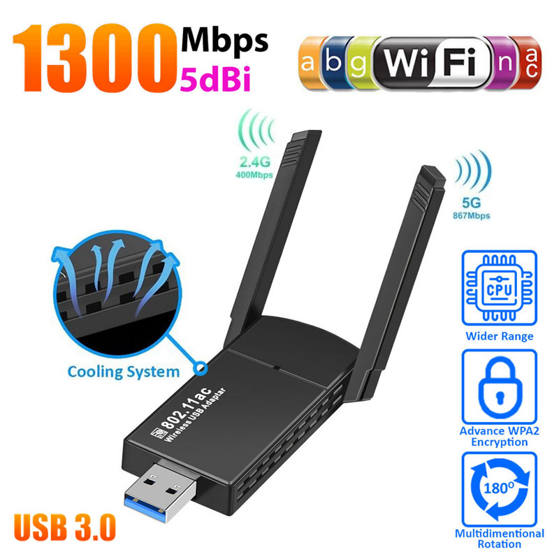 1.USB WiFi Adapter adopts a dual-band connection, up to 1300Mbps, wireless speed is 867Mbps in the 5GHz WiFi band, and 400Mbps in the 2.4GHz WiFi band. Reduce lag and lag performance for online gaming and seamless HD video streaming.