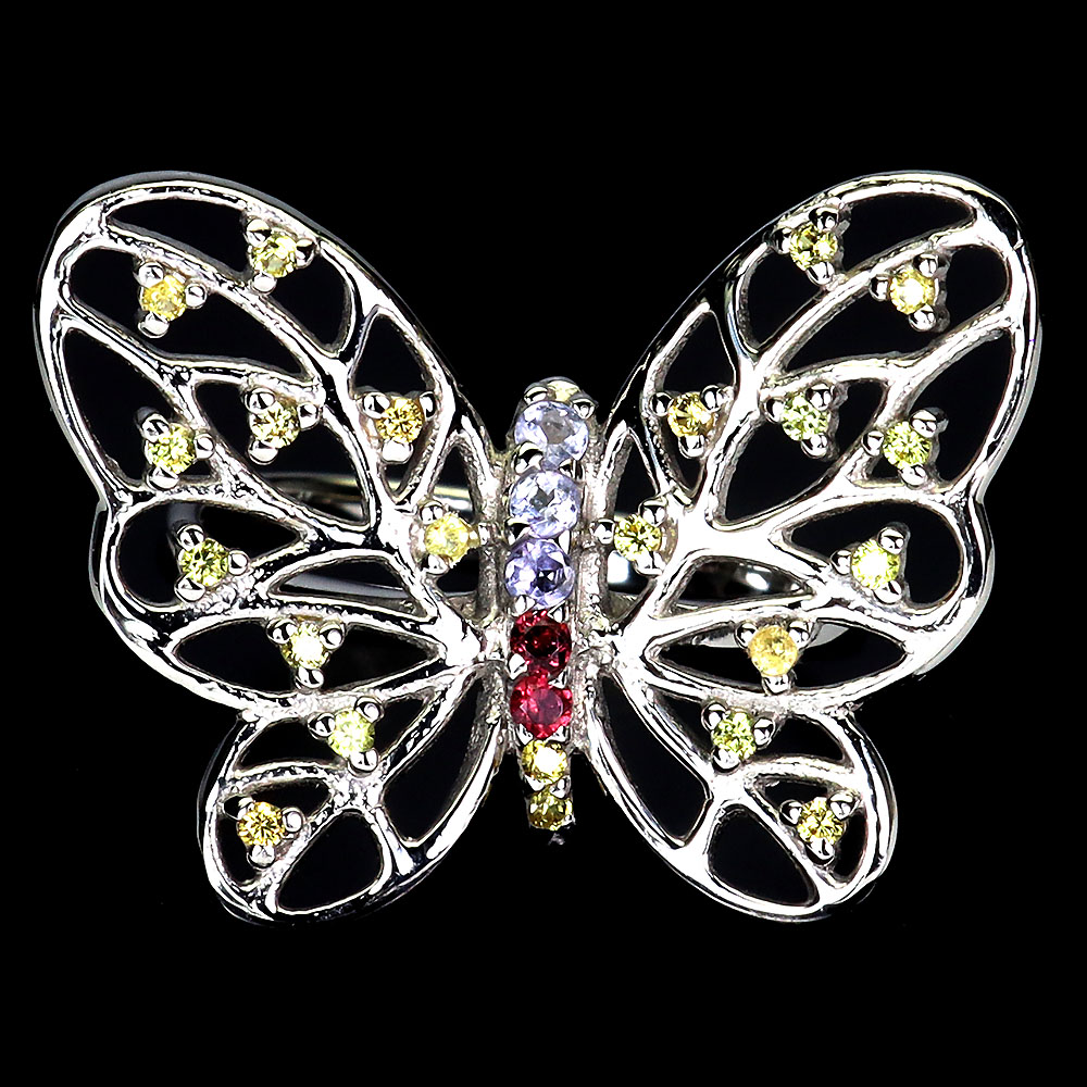 Heated Round Sapphire Multi Color 3.5mm Tanzanite 925 Sterling Silver Ring Size 9
