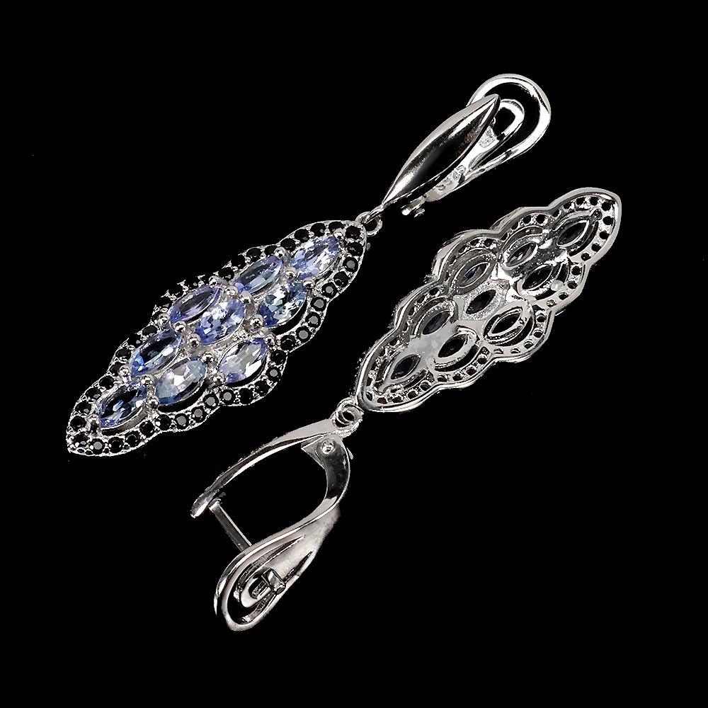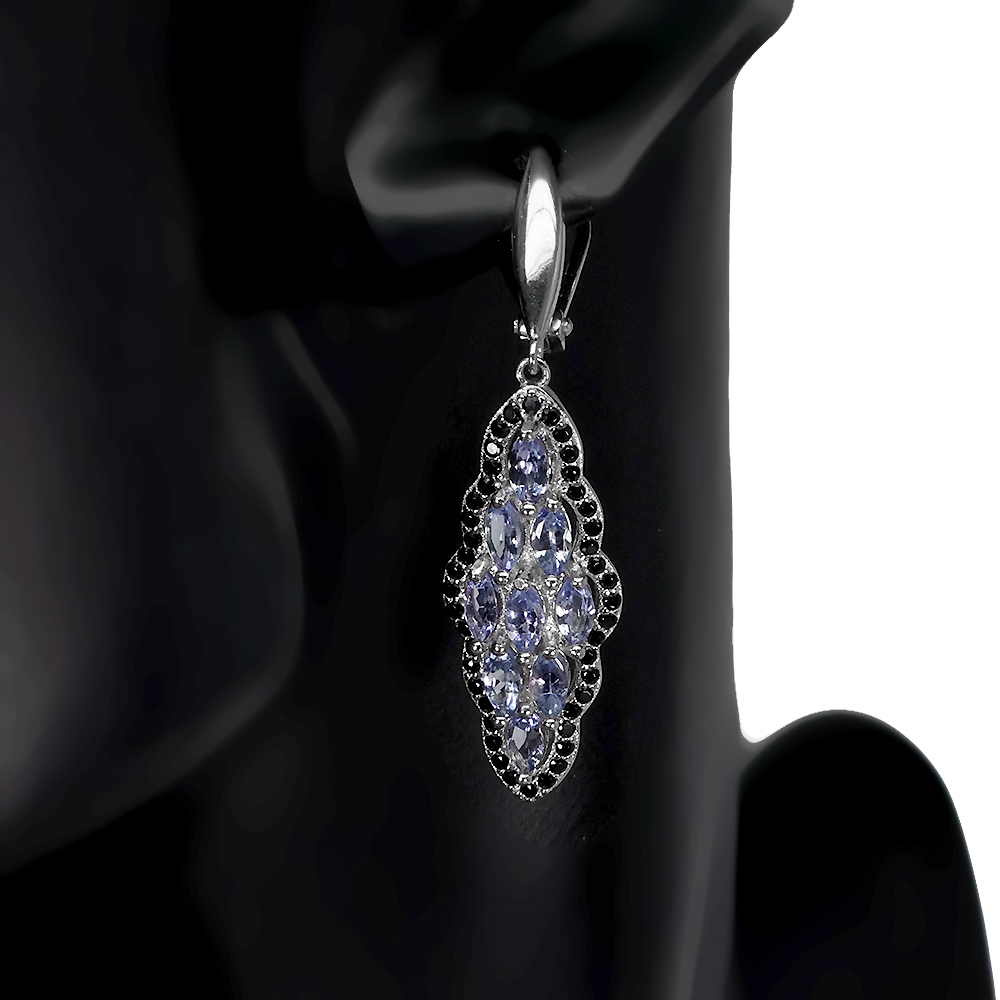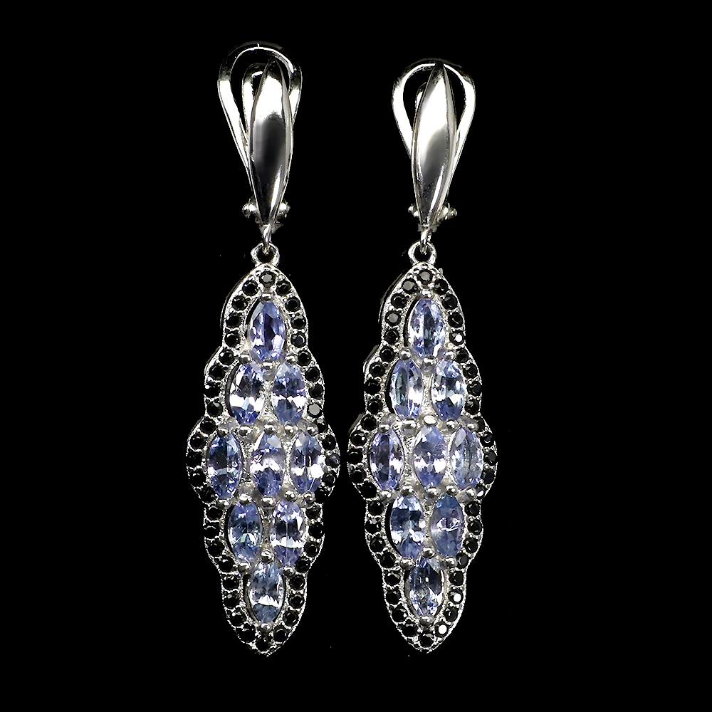 Unheated Marquise Tanzanite 5x2.5mm Black Spinel 925 Sterling Silver Earrings