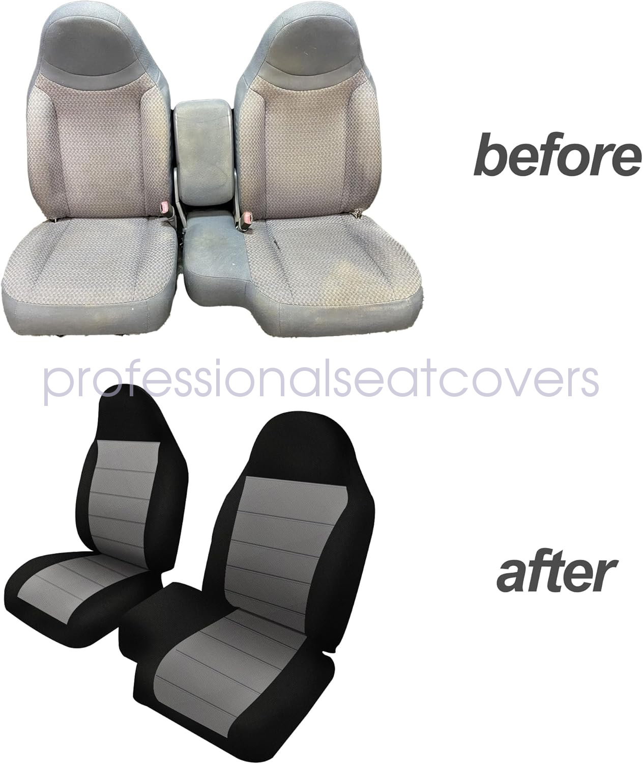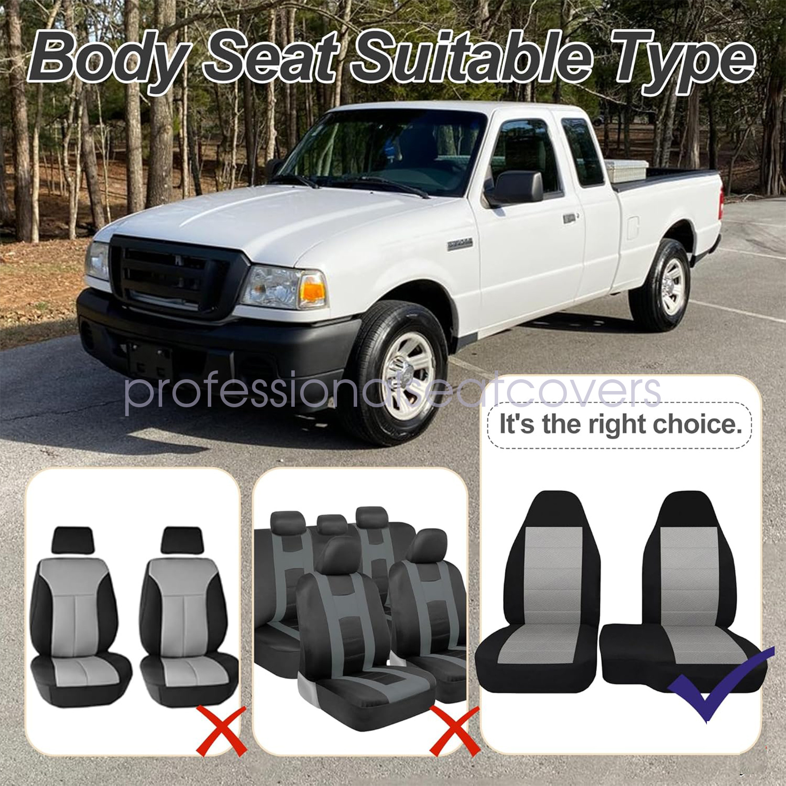 Replacement For 2004 2005 2006 2007 2008 2009 2010 2011 2012 Ford Ranger Driver & Passenger 60/40 High Back Seat Cover Black & Light Gray