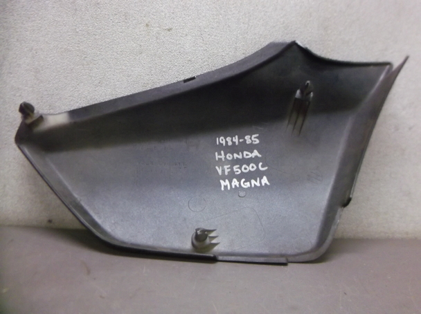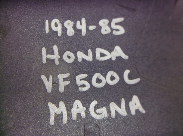 Used Left Side Cover for 1984-85 Honda VF500C Magna The Product: A used left side cover for a 1984-85 Honda VF500C Magna. Research: We are basing that this is what it fits by what was written on the inside of the side cover when we got it. It said "1984-85 Honda VF500C Magna" handwritten on it. On the part itself we found what looks to be "83700-MJ8A-0000". We bought out another salvage yard in the area and they individually labeled each side cover. We think that the label is correct but we did not do any further research. Please look at the pictures closely and make sure your side cover is the same. Also, see if your side cover has the same numbers on it. Please note our return policy if the side cover is mislabeled. Layout of pictures: The first picture is of the front of the side cover. The second picture is of the back. The third picture is a side angle. The fourth photo is of the stamped numbers "83700-MJ8A-0000” found on the side cover. The fifth picture is of the handwritten label. Condition: It is used and also is dirty, scratched and scuffed. When you receive it and if it does not fit, it is returnable as outlined below. Please note that we did not label these but we think they are correct but if the other shop misidentified it, you can return it for the purchase price but you will pay all shipping charges to and from. So make sure this looks like your side cover before buying. |