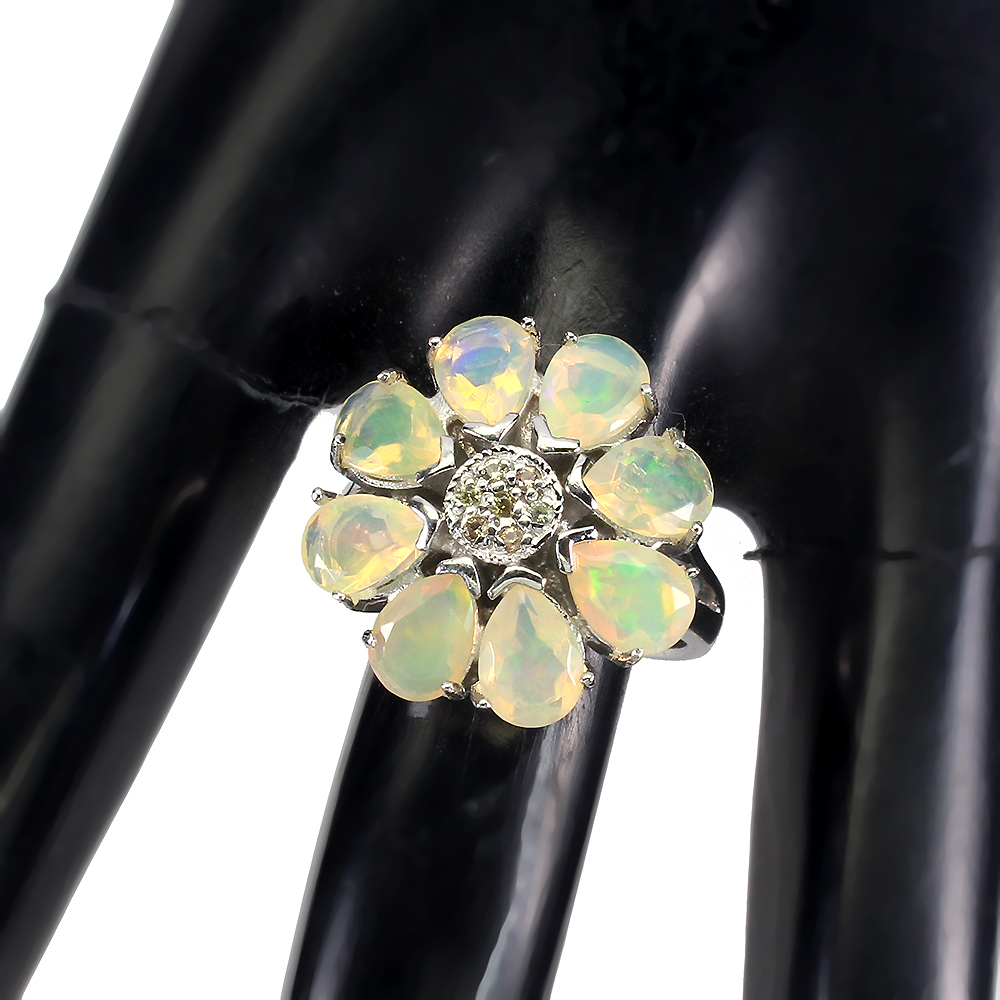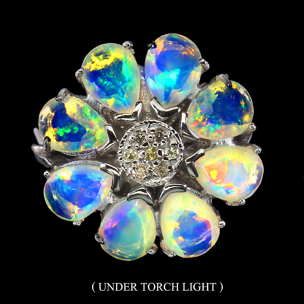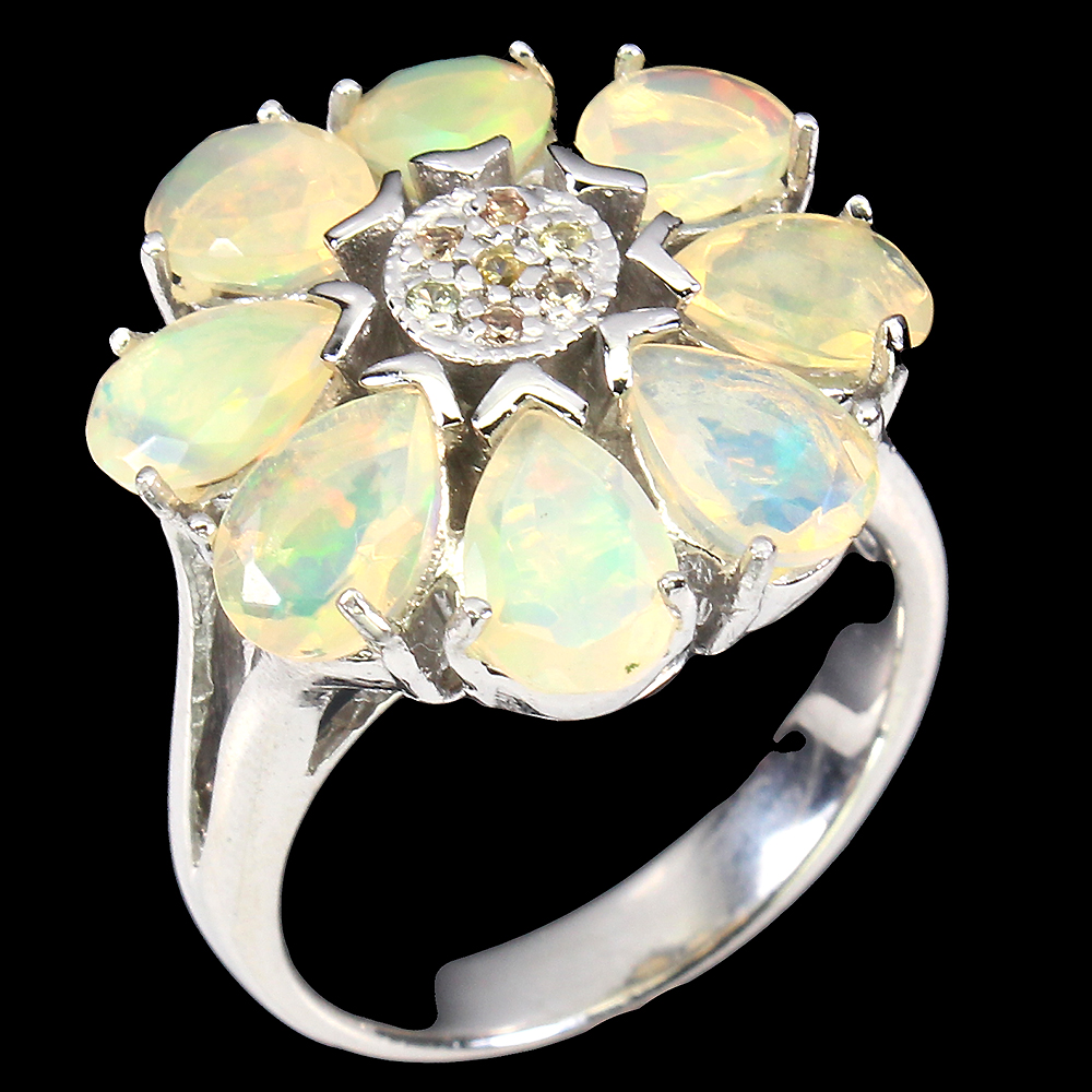 Unheated Pear Fire Opal 7x5mm Sapphire Diamond Cut 925 Sterling Silver Ring 8