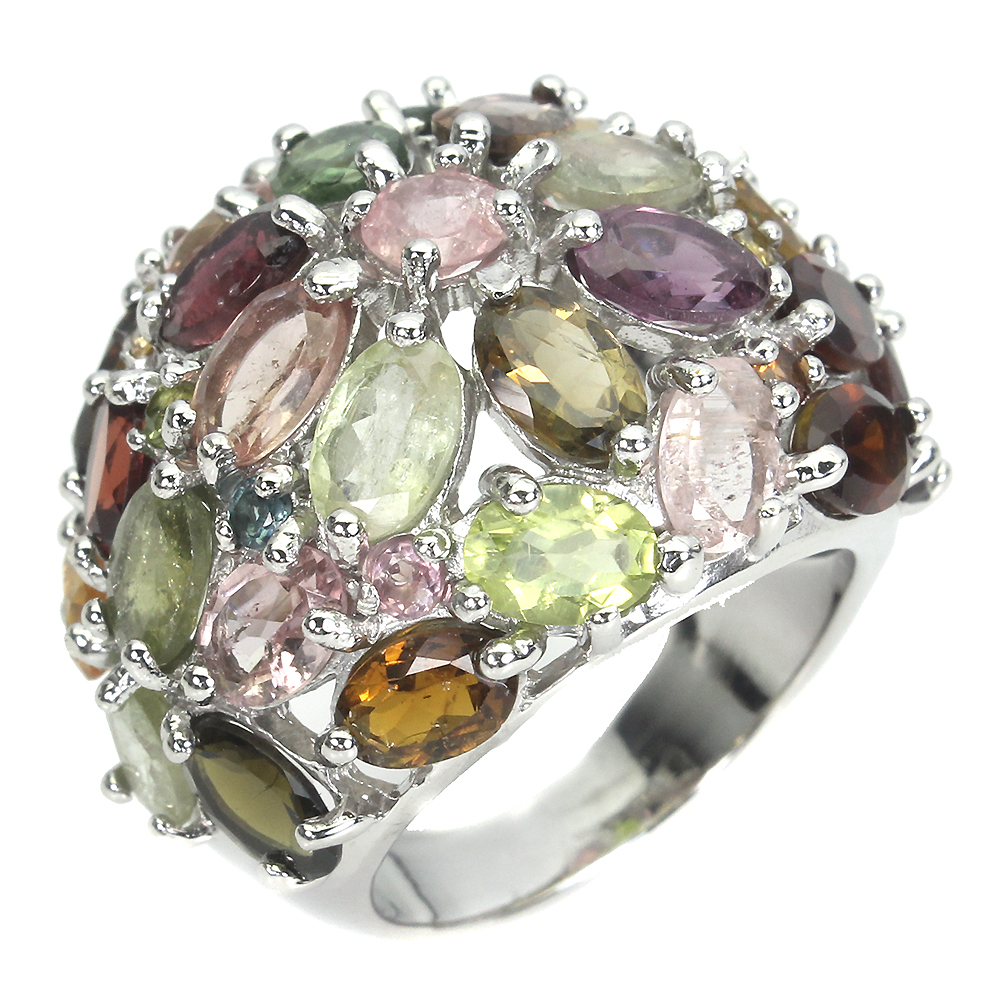 Unheated Oval Tourmaline 6x4mm 14K White Gold Plate 925 Sterling Silver Ring 7.5