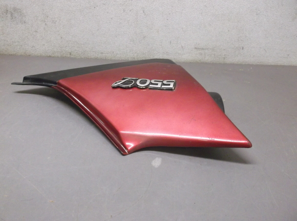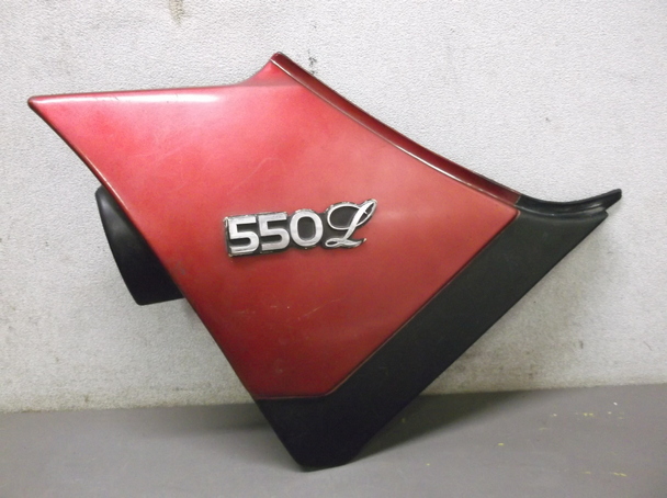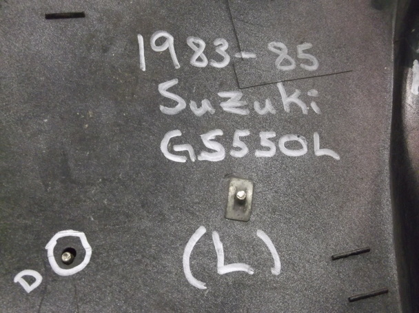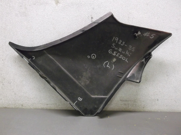 Used Left Side Cover for 1983-85 Suzuki GS550L The Product: A used left side cover for a 1983-85 Suzuki GS550L. Research: We are basing that this is what it fits by what was written on the inside of the side cover when we got it. It said "1983-85 Suzuki GS550L (L)" handwritten on it. We bought out another salvage yard in the area and they individually labeled each side cover. We think that the label is correct but we did not do any further research. Please look at the pictures closely and make sure your side cover is the same. Please note our return policy if the side cover is mislabeled. Layout of pictures: The first picture is of the front of the side cover. The second picture is of the back. The third picture is of the damage we found. The fourth photo is another view. The fifth picture is of the handwritten label. Condition: It is used and also is dirty, scratched and scuffed. There is a 1” piece missing, as seen in the third picture. There are also 2 small chips missing and a fastener missing from the name plate pin. When you receive it and if it does not fit, it is returnable as outlined below. Please note that we did not label these but we think they are correct but if the other shop misidentified it, you can return it for the purchase price but you will pay all shipping charges to and from. So make sure this looks like your side cover before buying.