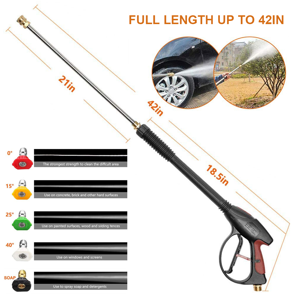 Easy to Operate: 21.2” Extension Pressure Washer Wand provide extra length for gun to get the hard to reach places, help you wash car or clean house easily.