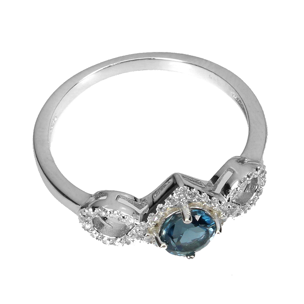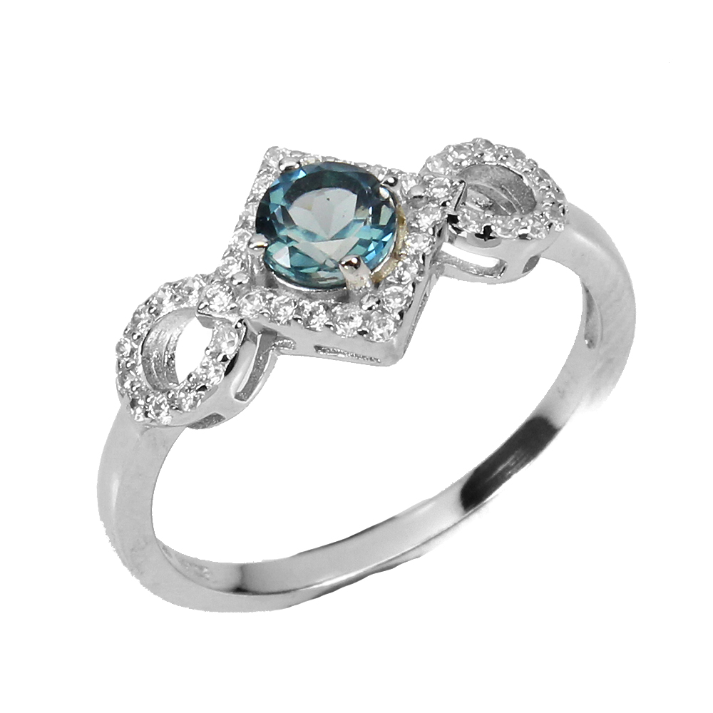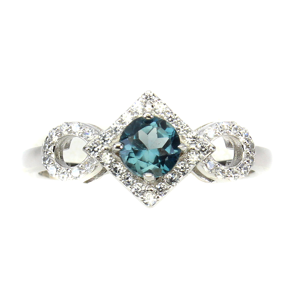Irradiated Round London Blue Topaz 5mm Simulated Cz 925 Sterling Silver Ring 6.5