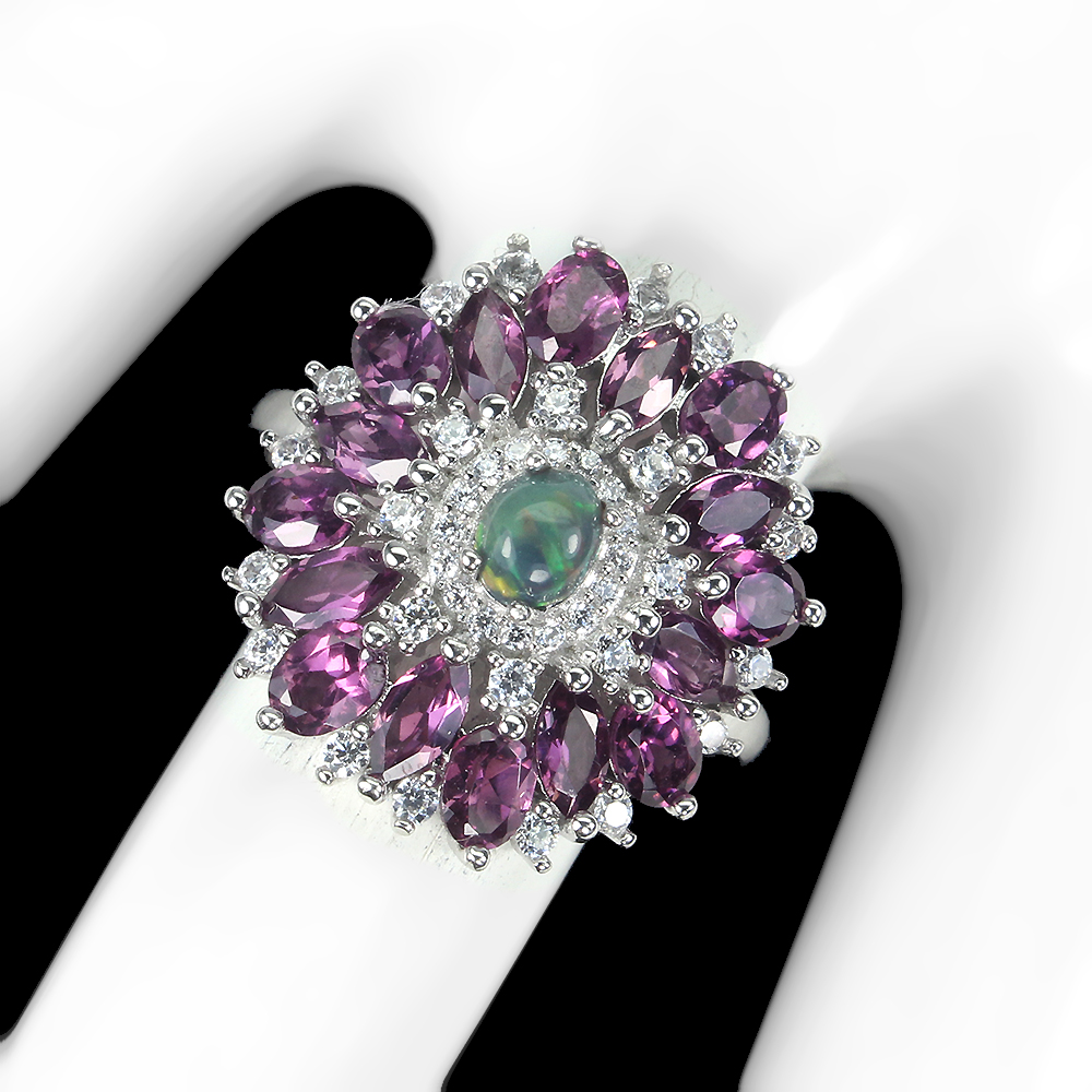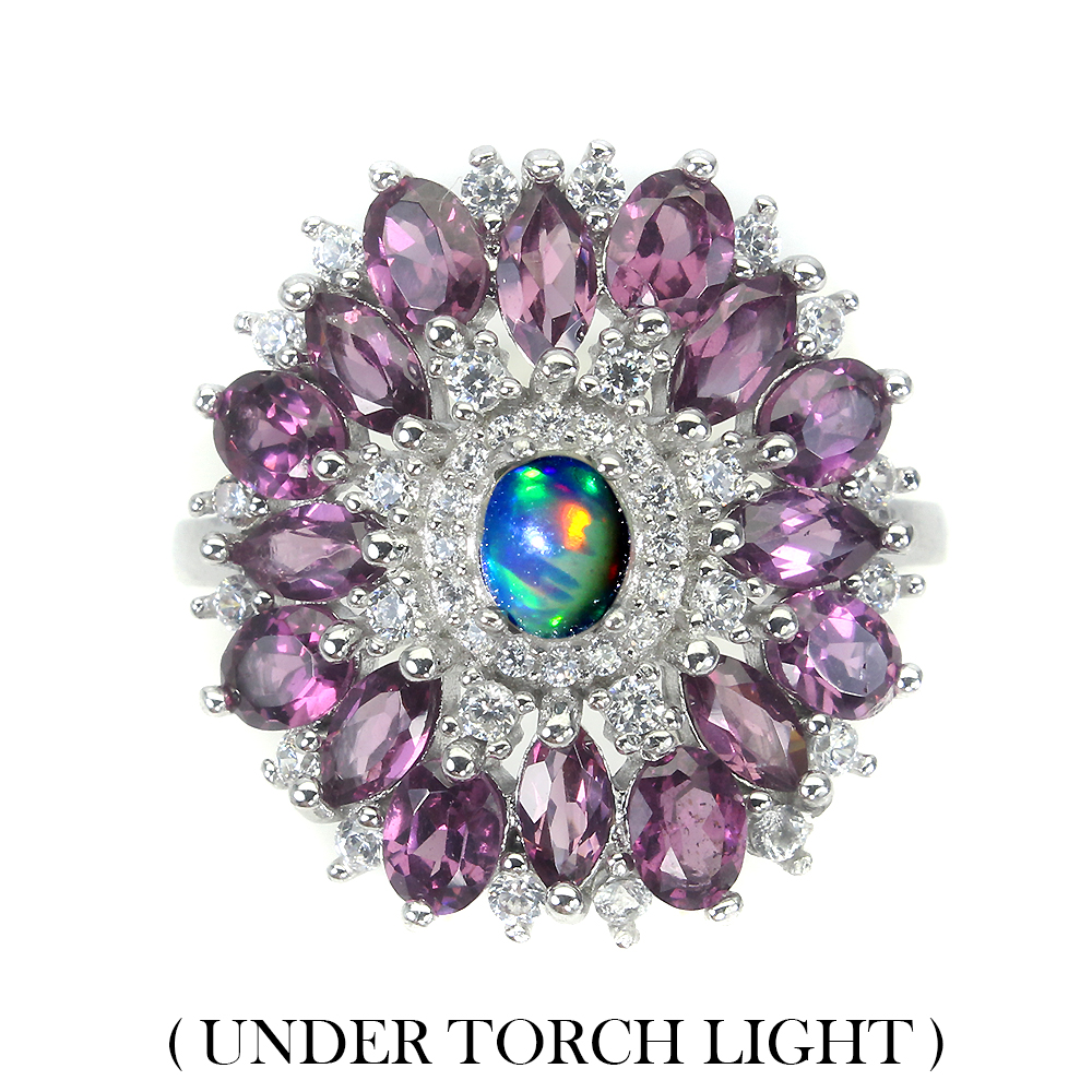 Clarity Enhanced Black Opal 5x4mm Rhodolite Gems 925 Sterling Silver Ring Size 6