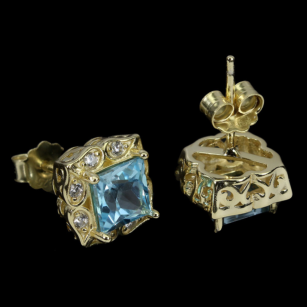 * STONE 6.0 MM. * CZ 1.5 MM. * FACE EARRINGS 13.0 X 13.0 MM.