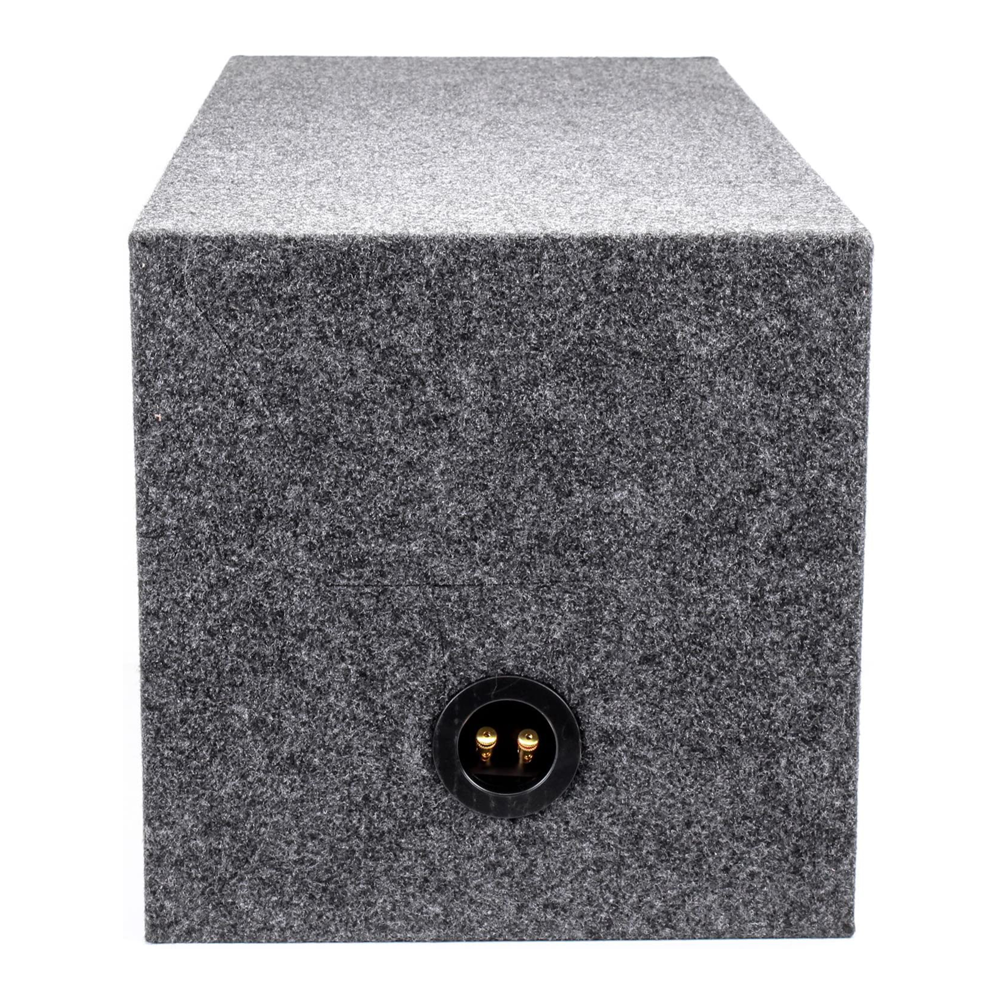 Crafted from heavy-duty medium-density fiberboard, this subwoofer enclosure box is built to last. Premium charcoal gray-colored carpeting adds ultra-security and durability to the box. Outfit this enclosure box with your 12-inch subwoofers and ensure your car audio is at its peak sound quality. Note: Subwoofers not included, enclosure only.