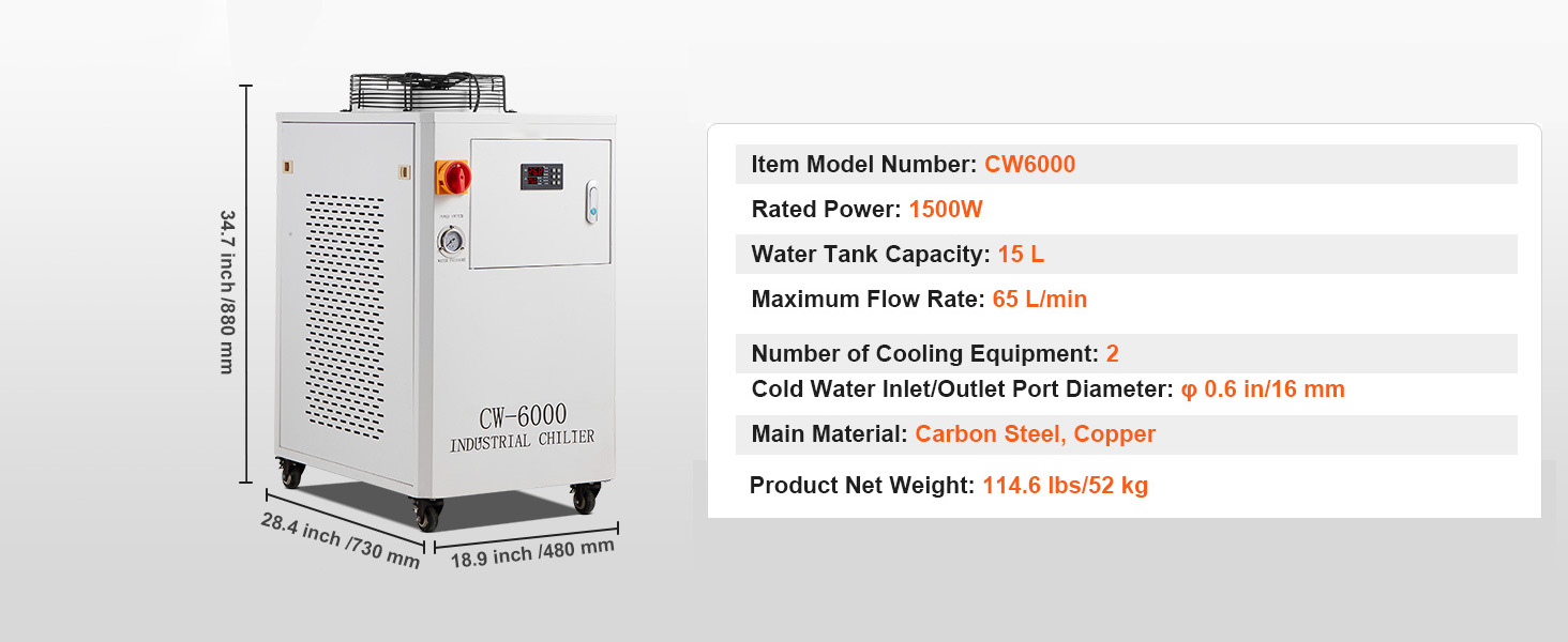CW-6000 series industrial water chiller of 3000W cooling capacity can be used to cool high-power lasers and high-speed spindles, etc. S&A industrial water chillers are popular for its 2 temperature control modes as constant temperature and intelligent temperature control. Under intelligent mode, the water temperature is adjusted according to ambient temperature. With that 1 key solution, customers no longer need to worry about the water temperature adjustment of seasonal changes.