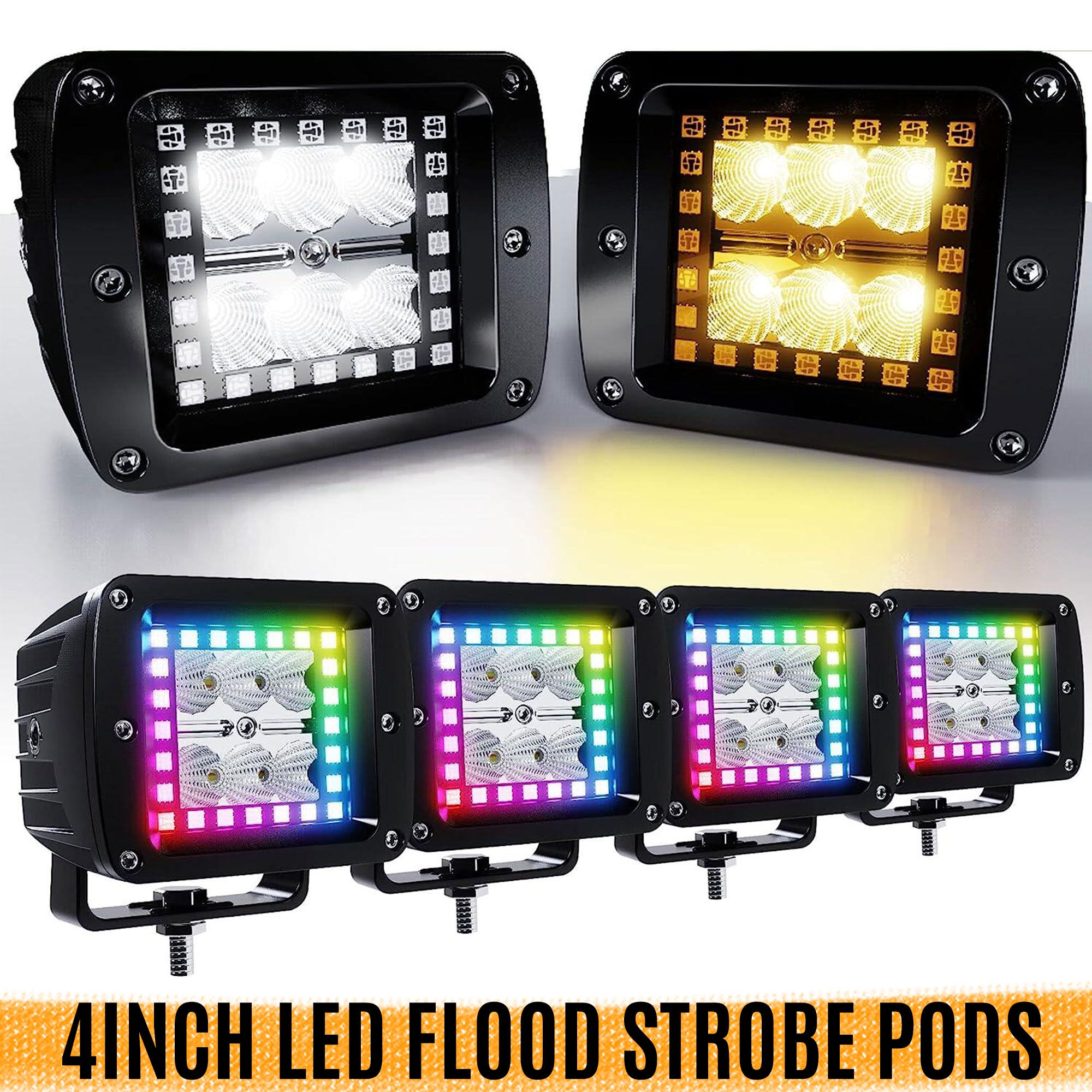 6 main LED chips in the middle provide white/amber dual color light and flashing strobe function (6 flash modes with Memory Function).