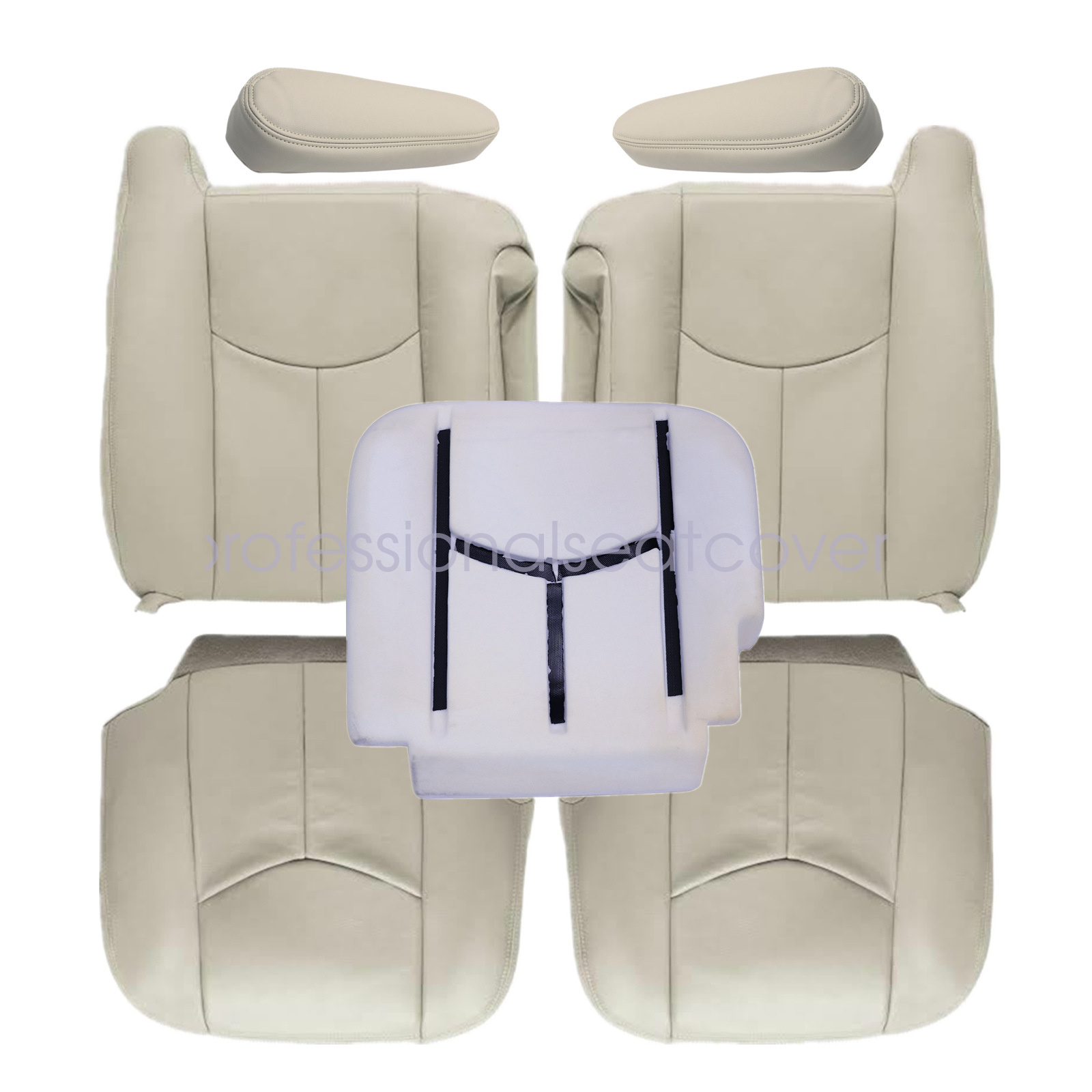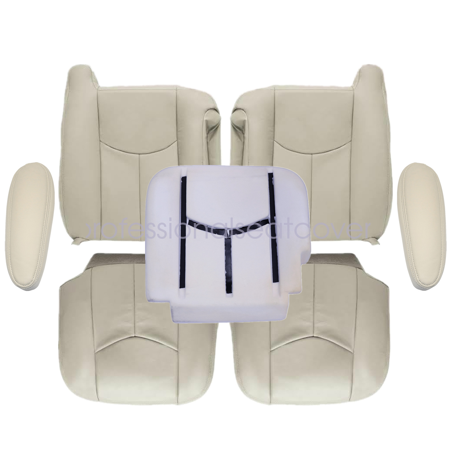 OEM Replacement For 2003-2006 Suburban Tahoe Yukon Driver & Passenger Bottom & Back Seat Covers & Armrest Cover Light Tan # 522 52i & Driver Bottom Foam Cushion