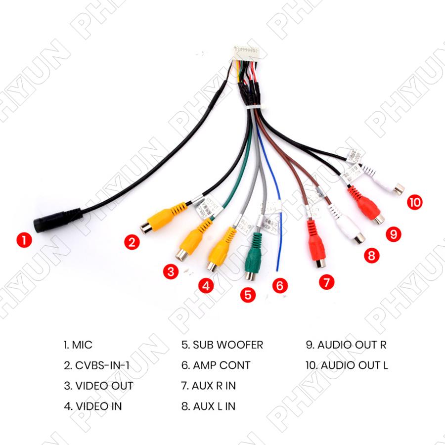 20-pin Car Stereo Radio RCA Output Wire Aux-in Adapter Cable With MIC