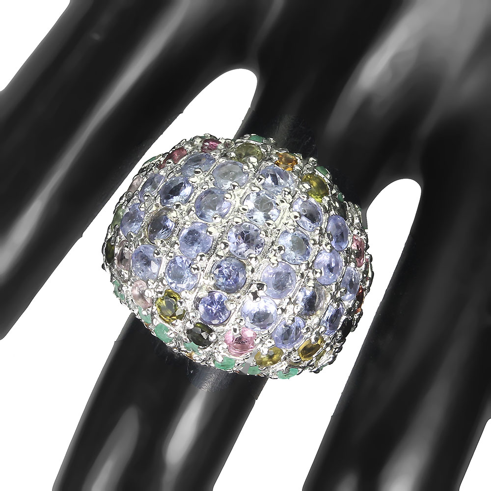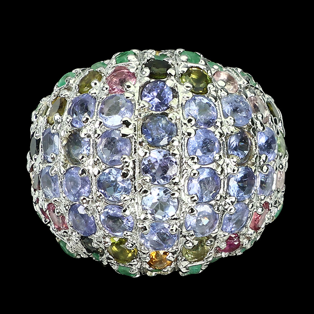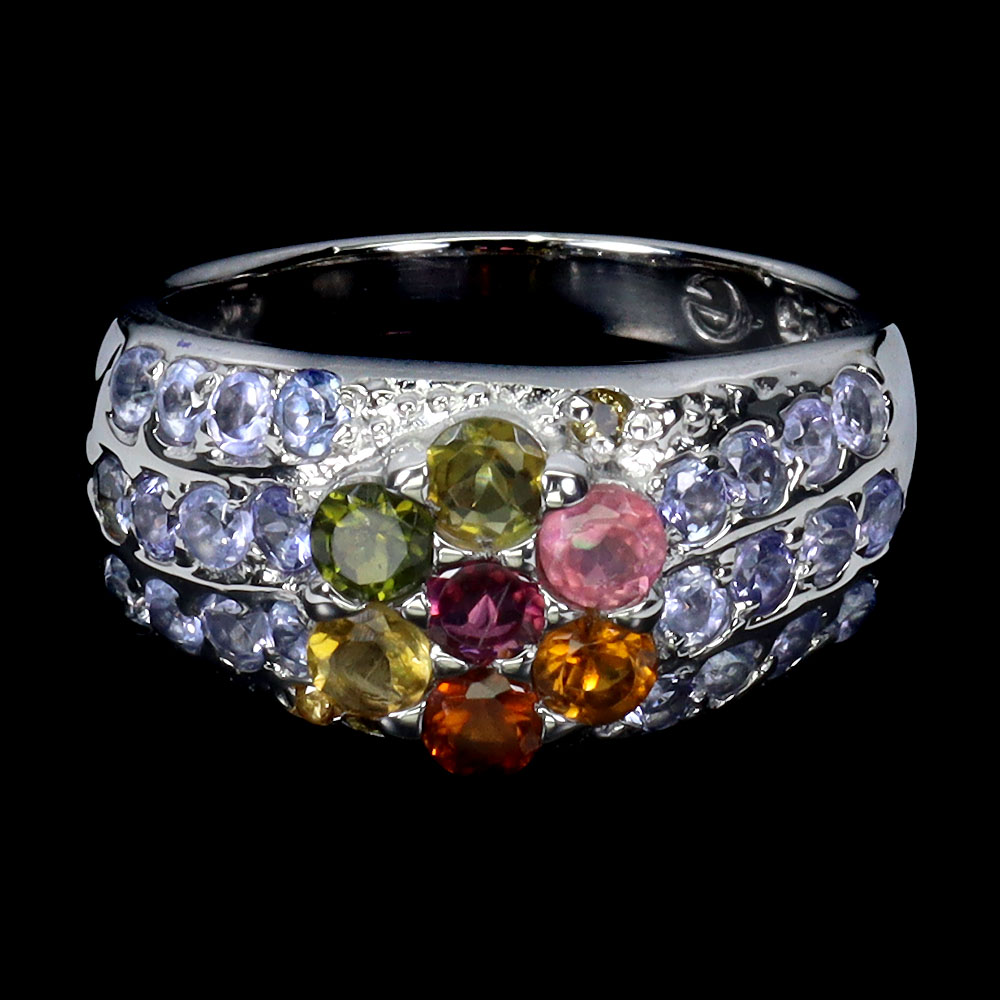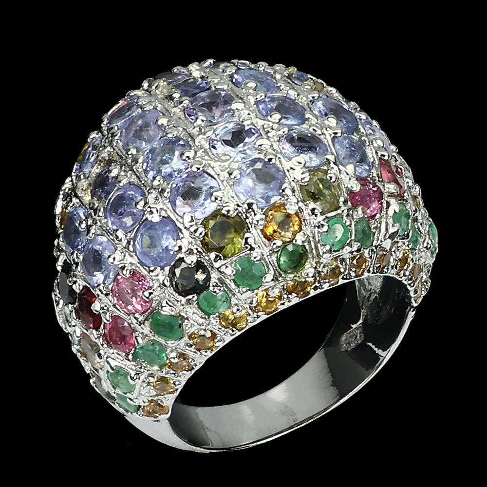 Unheated Round Blue Tanzanite 3mm Tourmaline Gems 925 Sterling Silver Ring 7.5