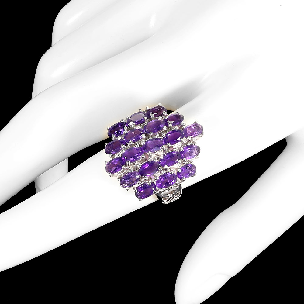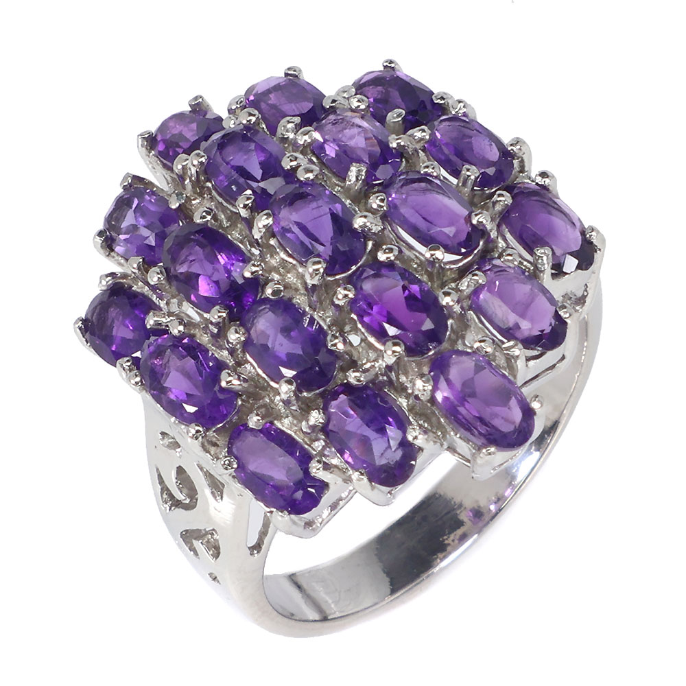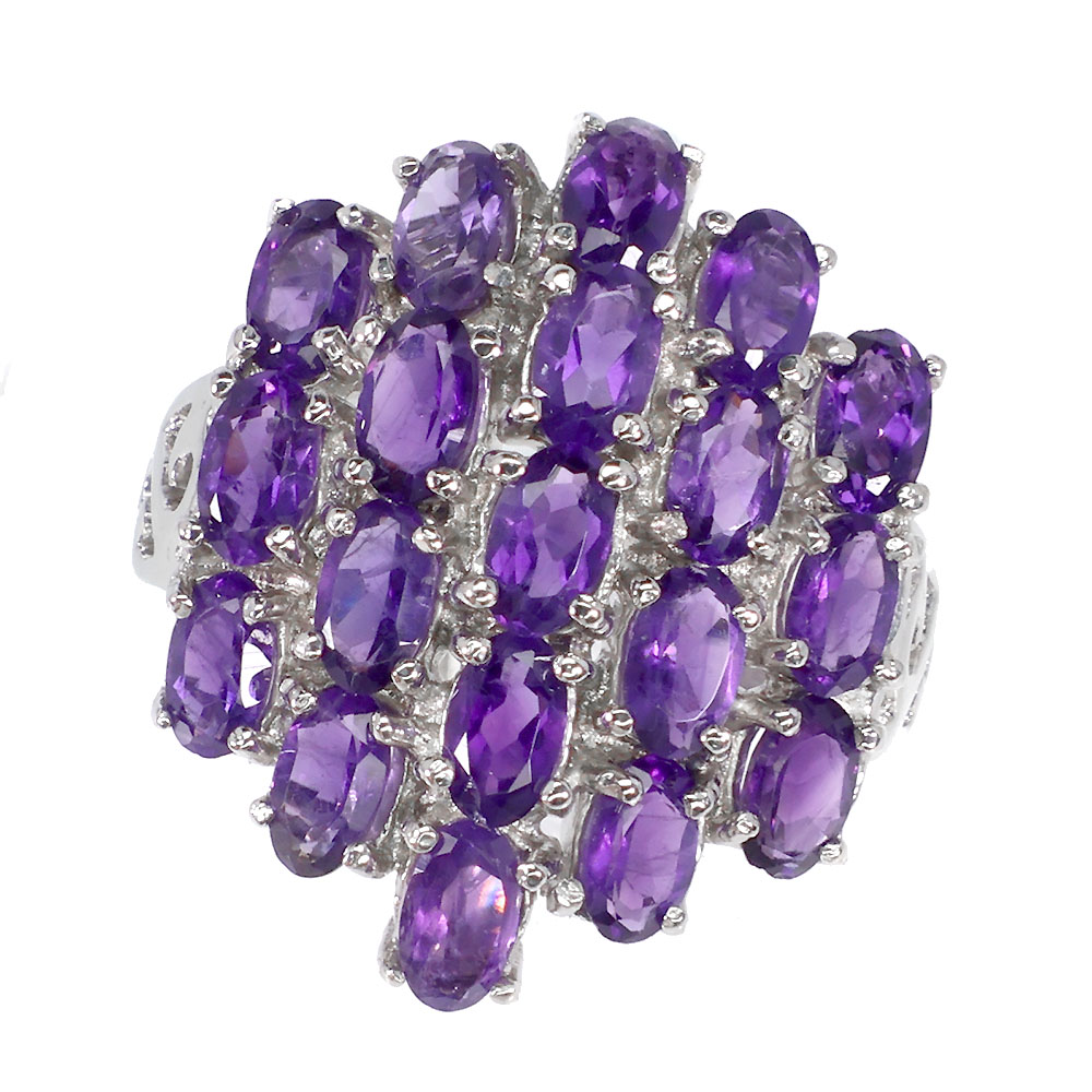 Unheated Oval Amethyst 5x3mm 14K White Gold Plate 925 Sterling Silver Ring 9