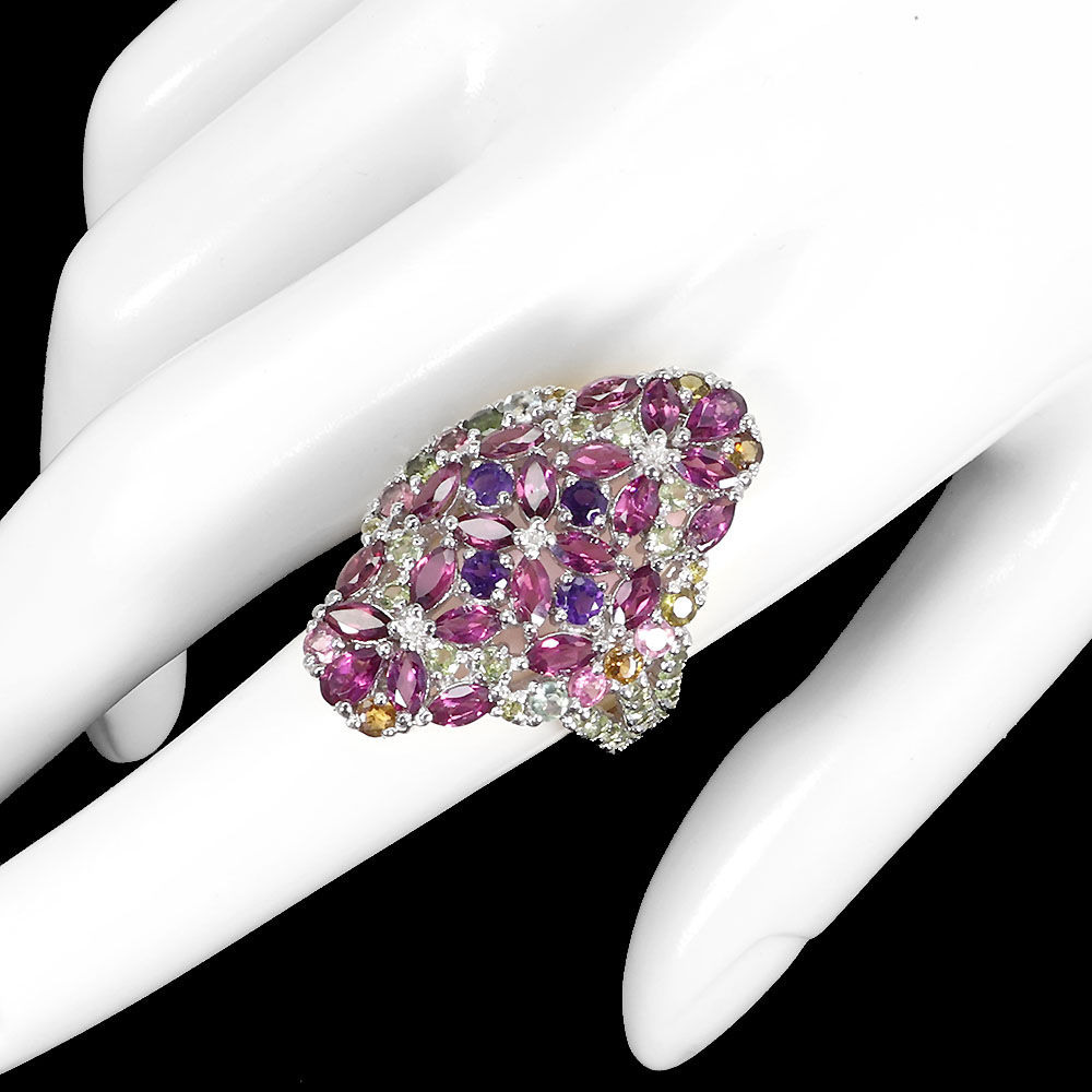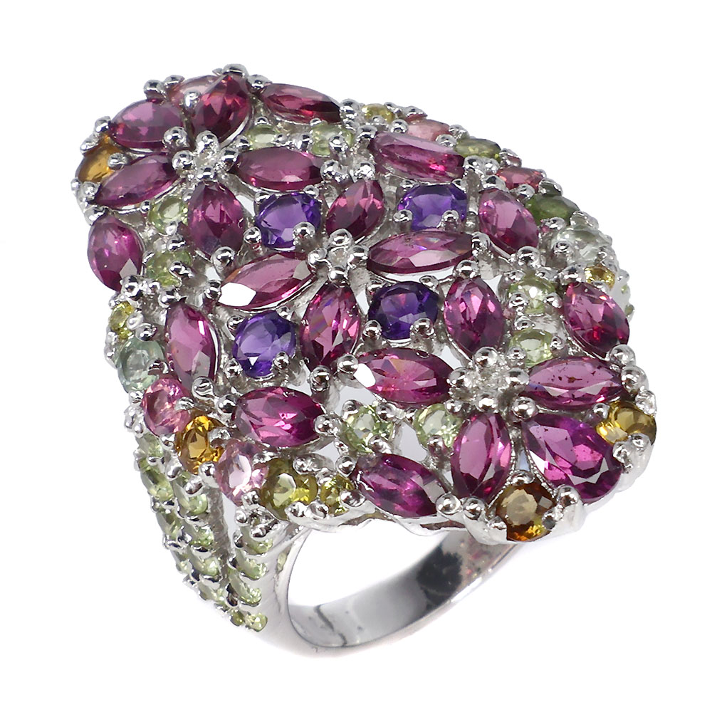 Unheated Rhodolite 5x3mm Amethyst Peridot Tourmaline 925 Sterling Silver Ring