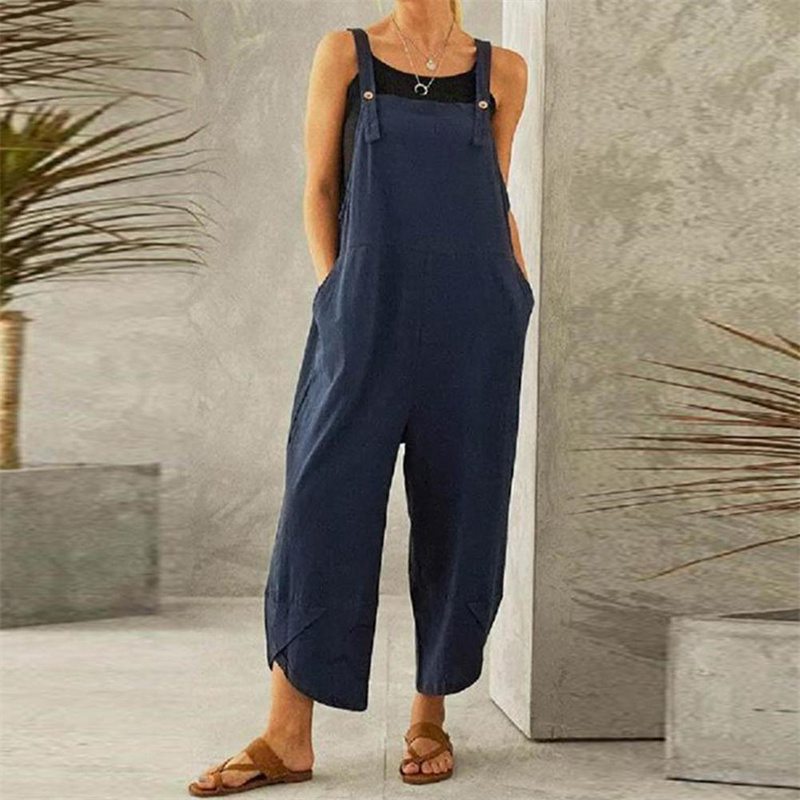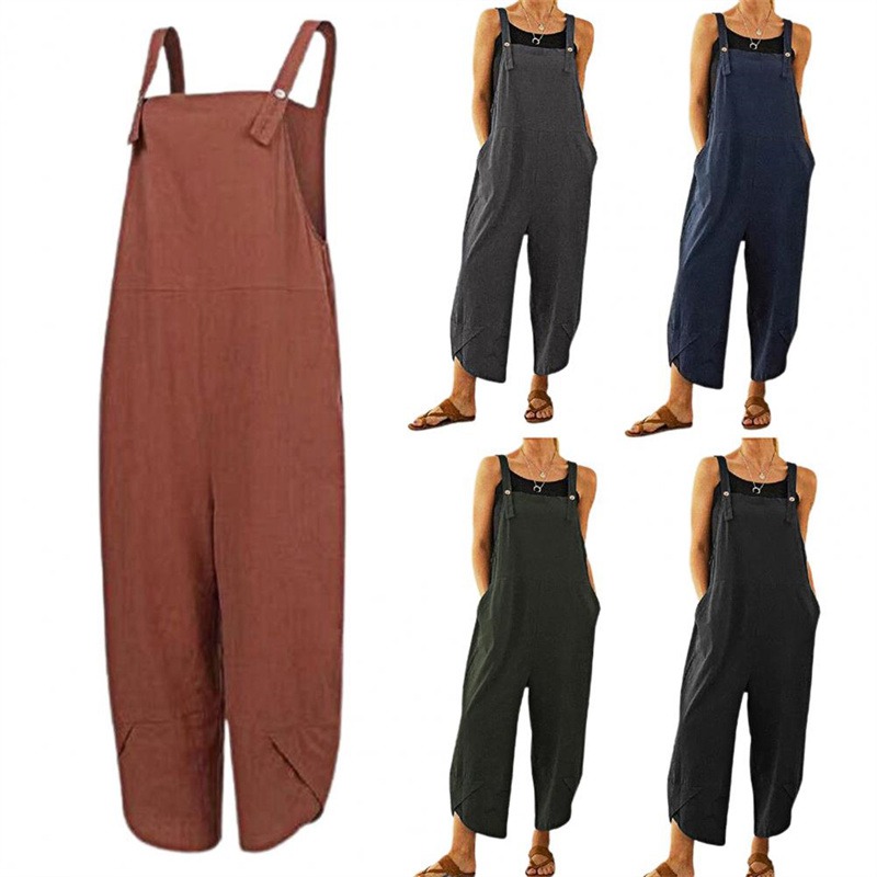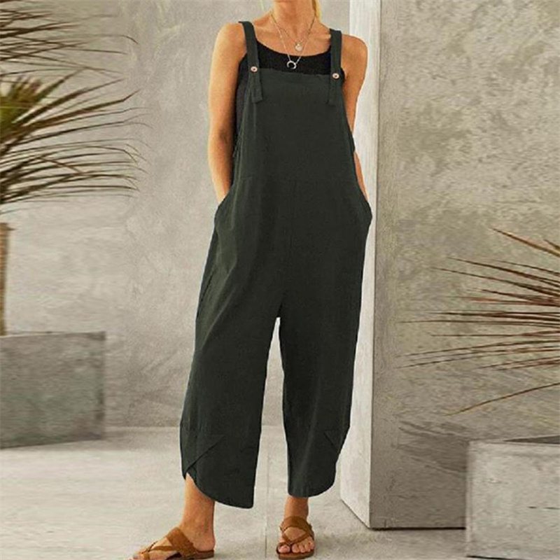 Solid color sleeveless loose jumpsuit is casual and fashionable. And the relaxed cut will make you feel loose and comfortable.