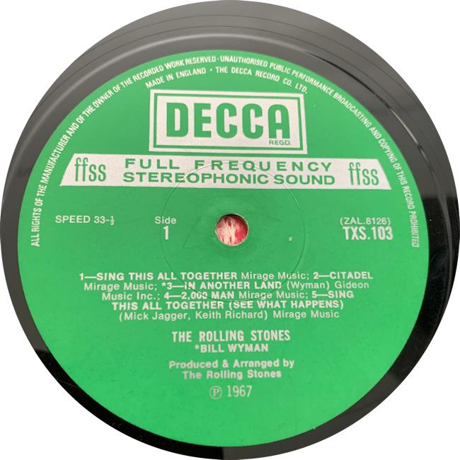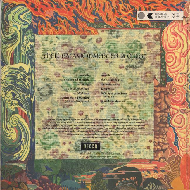 a later pressing of the rare lp "Their satanic majesties request" by the ROLLING STONES as released on Decca TXS 103 in the UK in 1969.