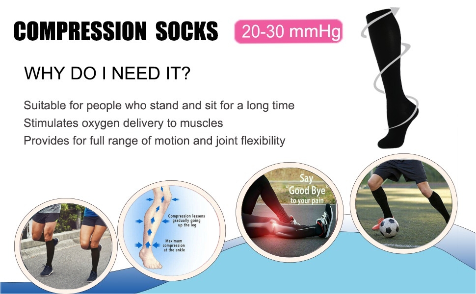 COPPER COMPRESSION SOCKS Copper is a great conductor of electricity, we extended its natural property to rejuvenate blood circulation through your legs through copper fibers capable reviving blood circulation along with providing a 20-30 mmHg compression. It offers the most perfect settlement scheme for those who sit for long period during travel or at work. Feature: 1. Reduce Swelling 2. Boost Circulation 3. Soothe and Massage Achy Legs and Feet 4. Relieve Symptoms of Varicose Veins 5. Prevent fatigued legs from long periods of sitting or standing 6. During pregnancy helps prevent the formation of varicose and spider veins 7. Maintains healthy, energized legs and calves Specifications: Material Content: 85% Nylon, 10% Polyester, 5% Copper Fiber Color: Black, Beige, White Size Information: Size-Small/Medium - Women sizes 6 - 9 and Mens sizes 5 - 9 Size-Large/Extra Large - Women sizes 9 - 12 and Mens sizes 9 - 11 Size-XXL - Women sizes 12+, Mens sizes 11+ Package include: