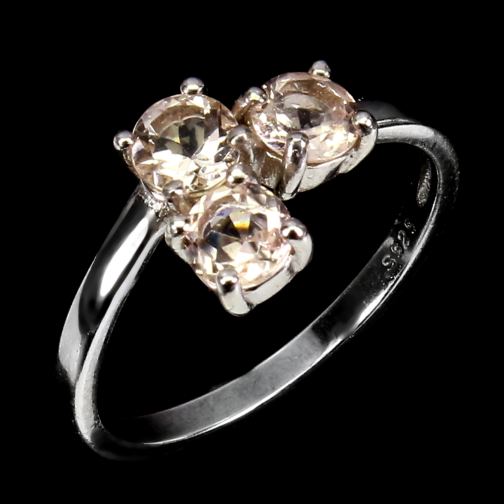 Unheated Round Morganite 4mm 14K White Gold Plate 925 Sterling Silver Ring 7