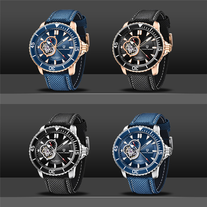 Description: Model:PD-1674 Brand:PAGANI DESIGN Movement:Japan Seiko NH39 Automatic Mechanical Band Material: Leather Nylon Band Case Material:Stainless Steel Dial Diameter: 44mm Case Thickness: 15mm Strap Length: 240mm Band Width: 22mm Water Resistance: 100M Dial Window Material:Synthetic Sapphire Glass Clasp Type:Pin Buckle Package Includes: 1 x Original Watch 1 x User Manual 1 x Watch Box