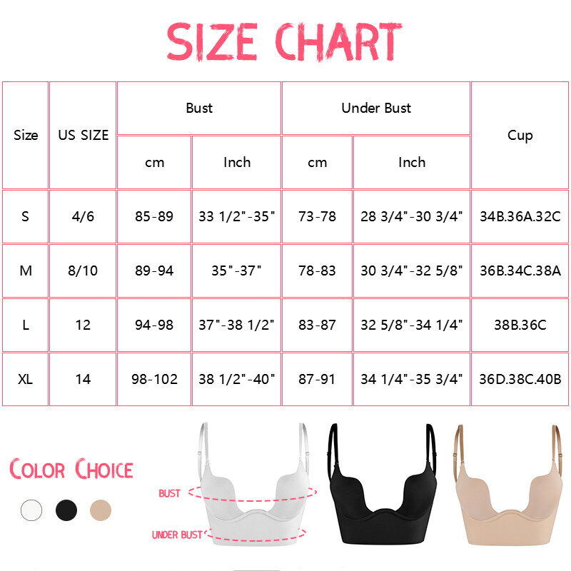 DEEP U PLUNGE BRA: With the deep U plunge design, the bras for women helps to push up your chest and creates perfect cleavage. It can gather your breast, providing a sexy and charming shape. This backless bra is the best choice for strapless dress to make your breast curve more beautiful.