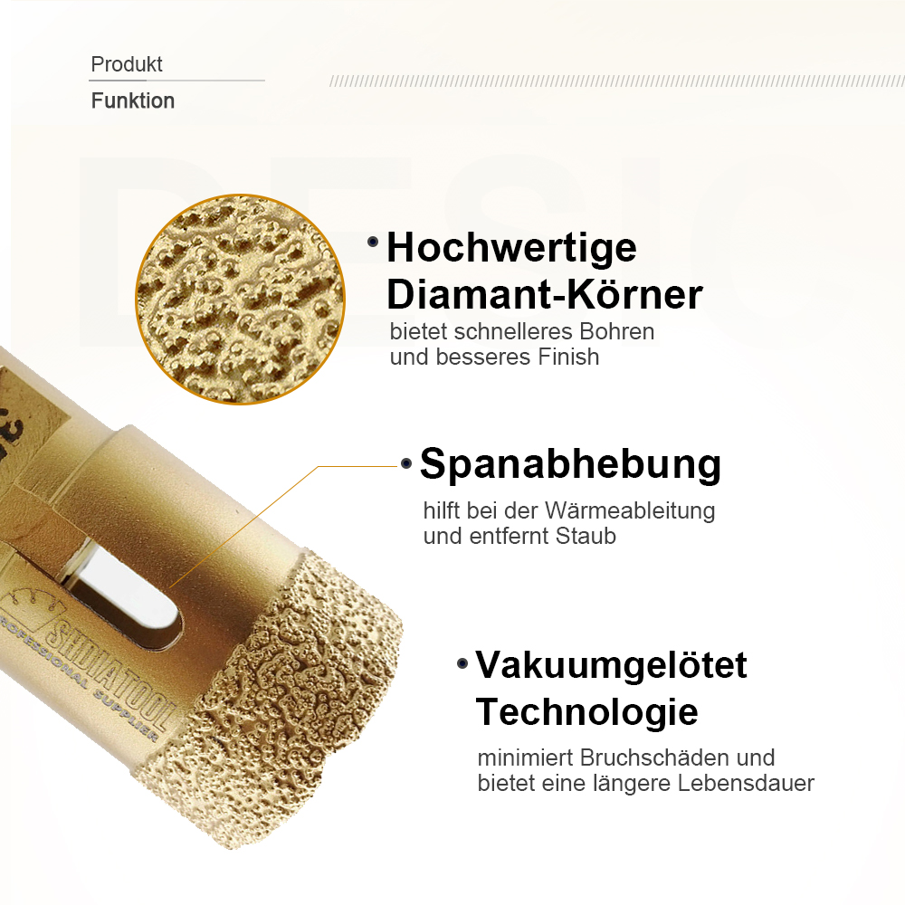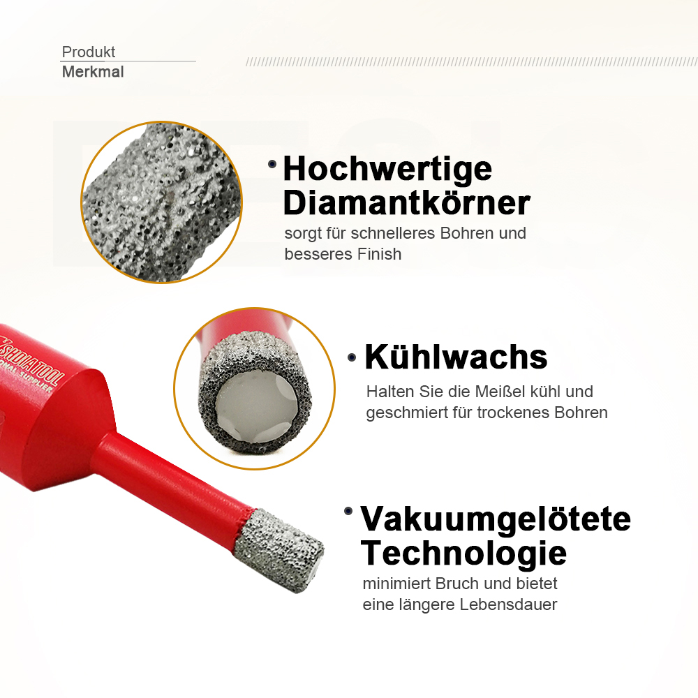 1. Bohrer: Trocken-/Nassbohren für Porzellanfliesen, Granit, Marmor, Keramik;