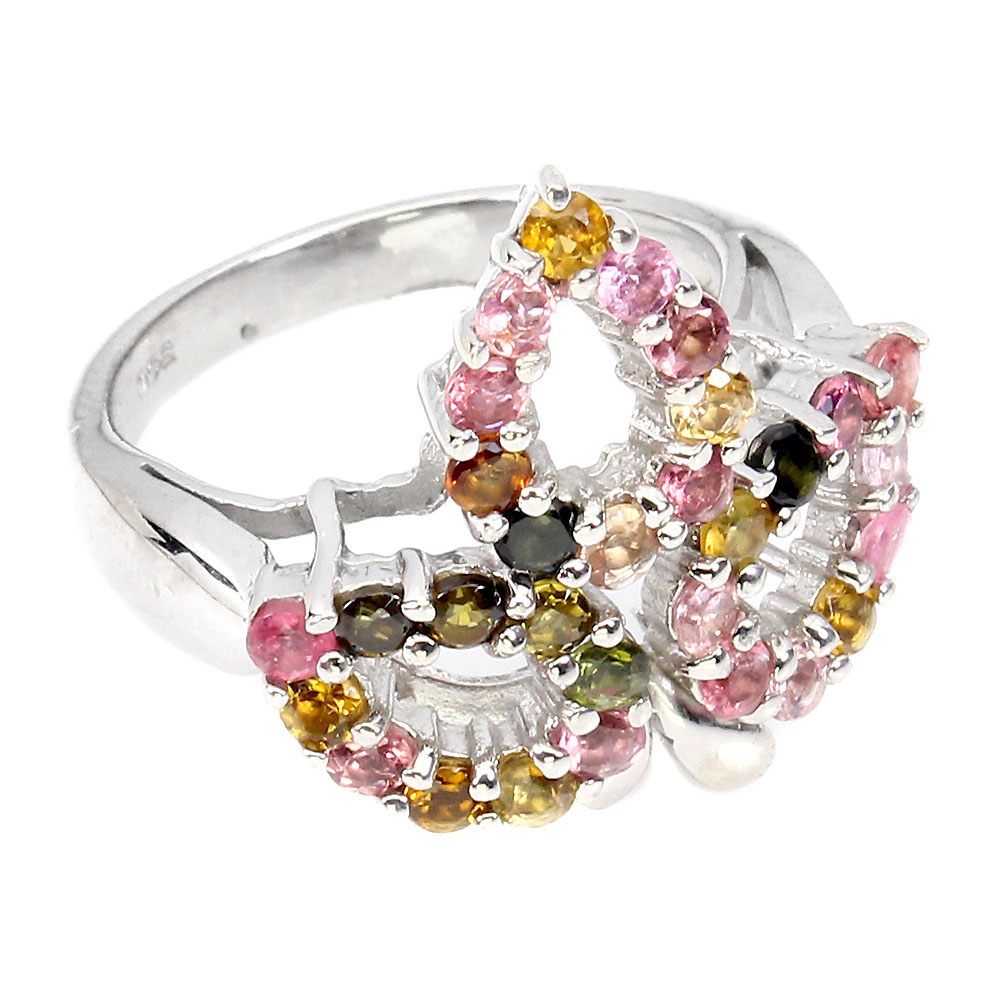 Unheated Round Tourmaline 2.5mm 14K White Gold Plate 925 Sterling Silver Ring 9