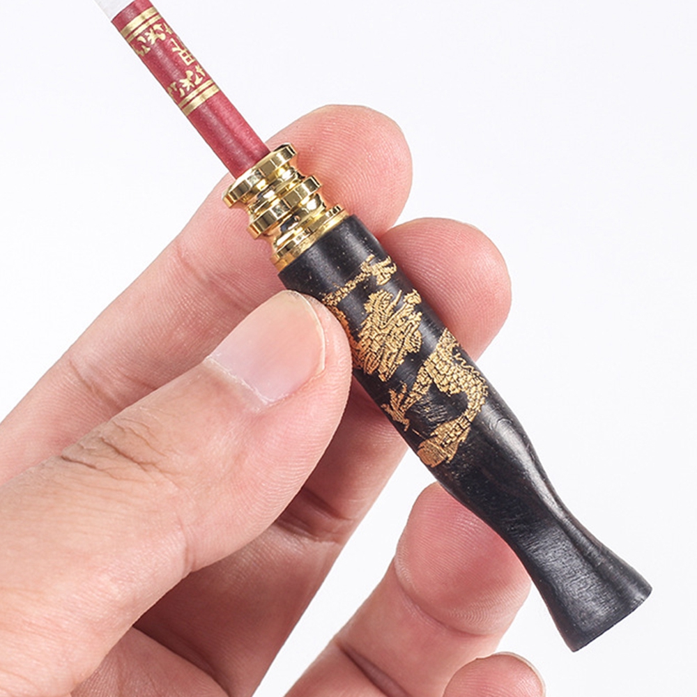 Dual Use Ebony Carved Dragon Filter Cigarette Holder Tobacco Filter Accessories