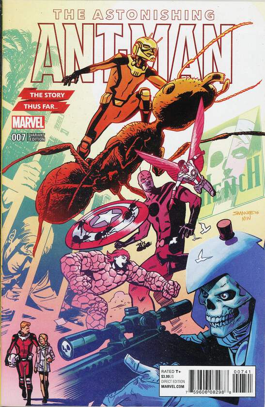 Get the full story on Ant-Man's tumultuous journey in Astonishing Ant-Man #7, written by Nick Spencer and illustrated by Ramon Rosanas, and featuring a cover art by Chris Samnee. After getting hit in his most vulnerable spot, Scott must turn to a life of crime to find a solution. Find out how he ended up back in jail in this thrilling issue.