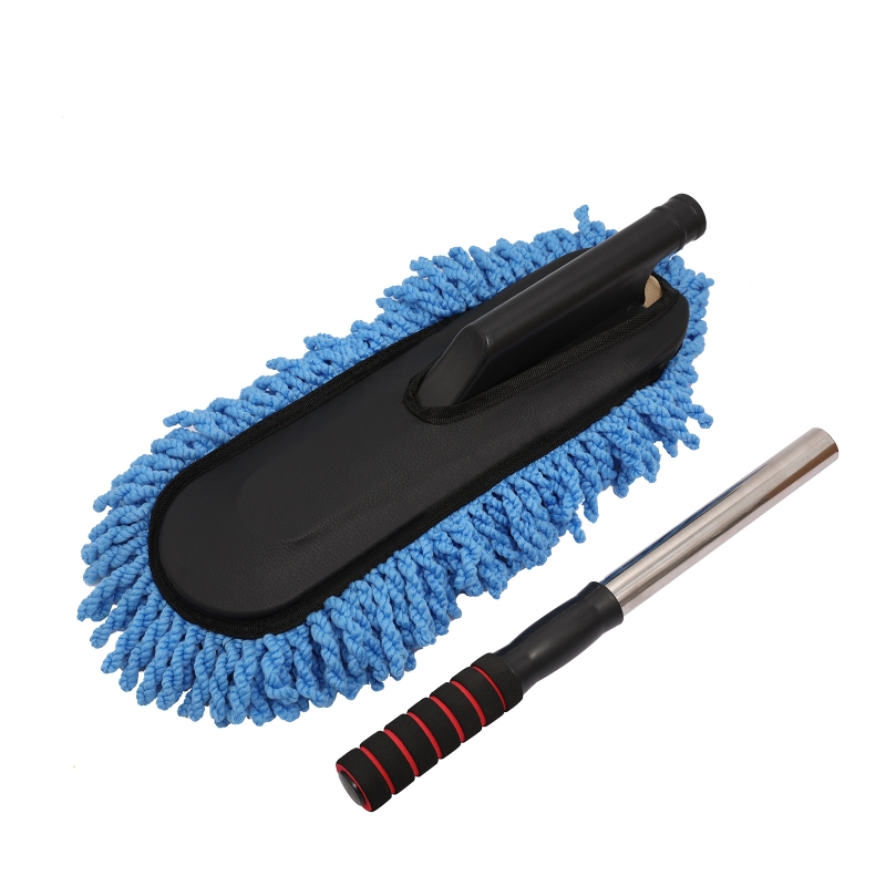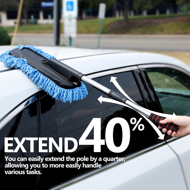 The large car duster is used for the exterior of the car and can sweep up dust in no time with a 20" handle for easier access to the roof.
