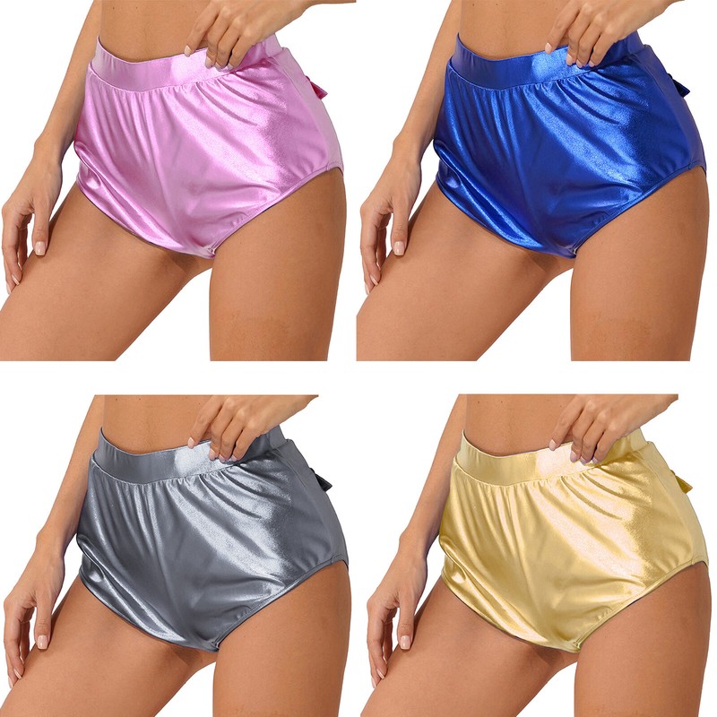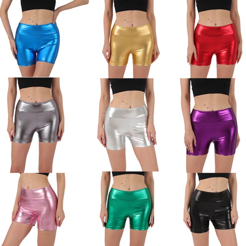 Stylish metallic shorts for women, form-fitting style hug your curves, highlights full buttocks shape, stunning and flattering.