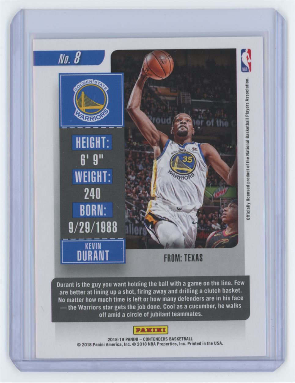 | 2018-19 Panini Contenders Game Ticket 8 Kevin Durant |