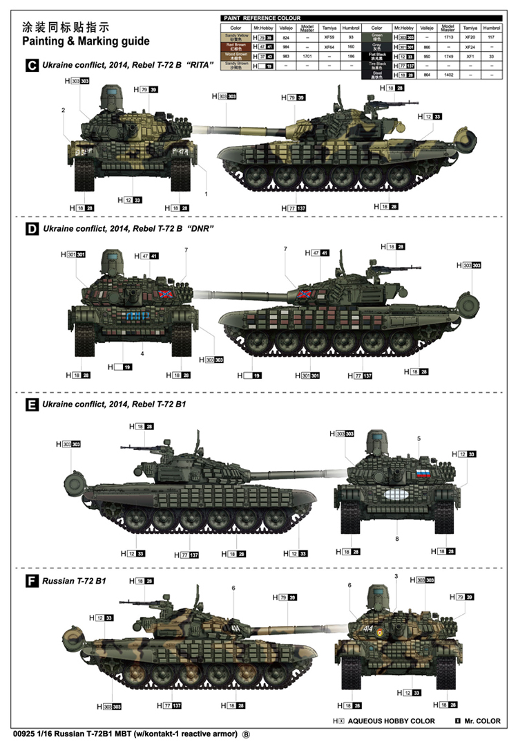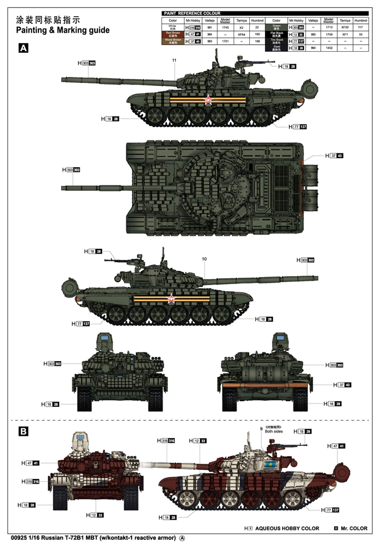 Trumpeter 00925 1/16 Scale Soviet Army T-72B/B1 Main Tank (Plastic model)