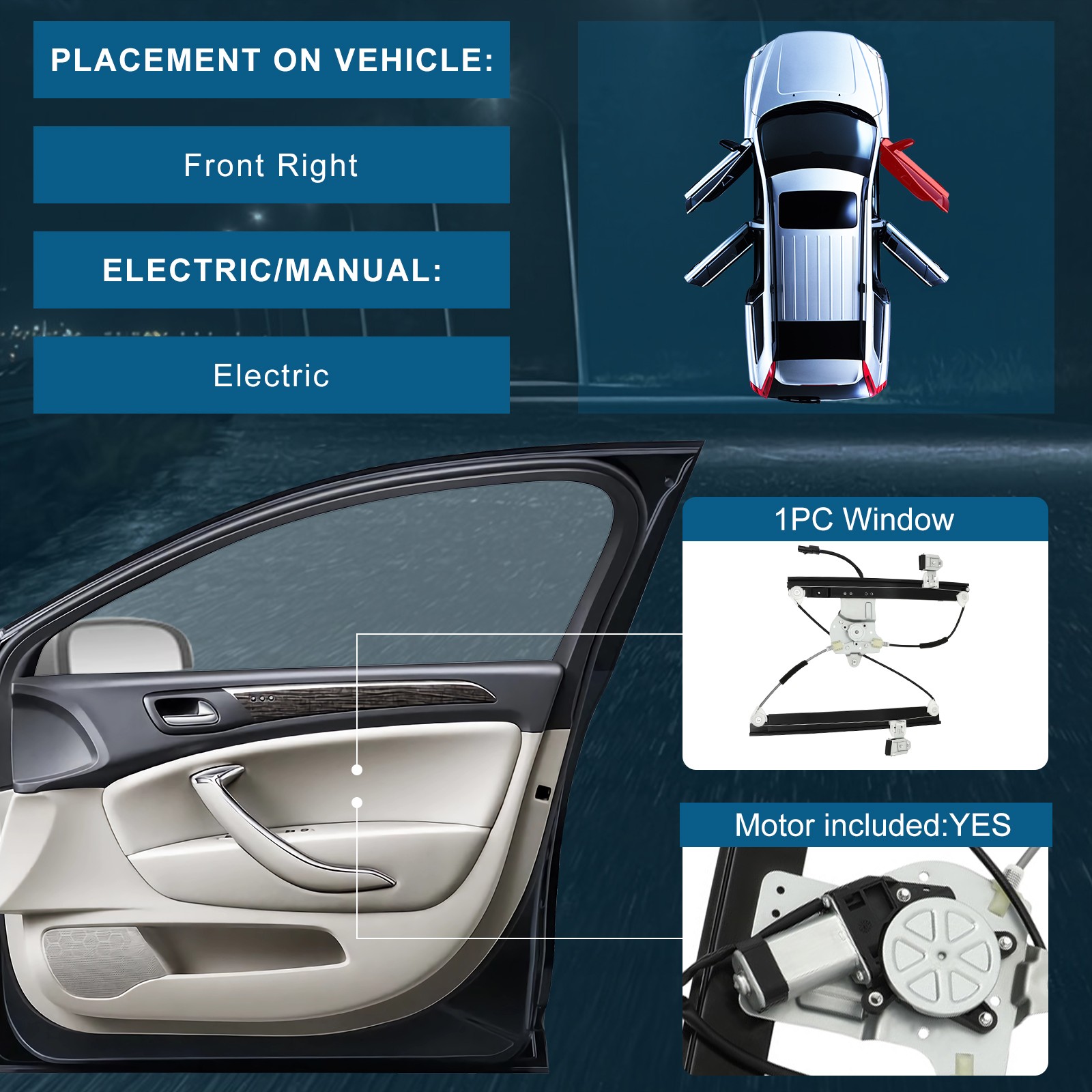 • Description         Our replacement window regulator is precision-engineered and extensively tested to match the exact fit, function and performance of the stock window regulator on specific vehicle years, makes and models. This replacement window regulator is precision-engineered and extensively tested to match the exact fit, function and performance of the stock window regulator on specific vehicle years, makes and models.