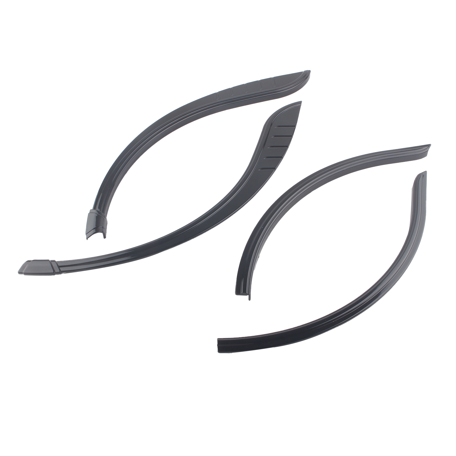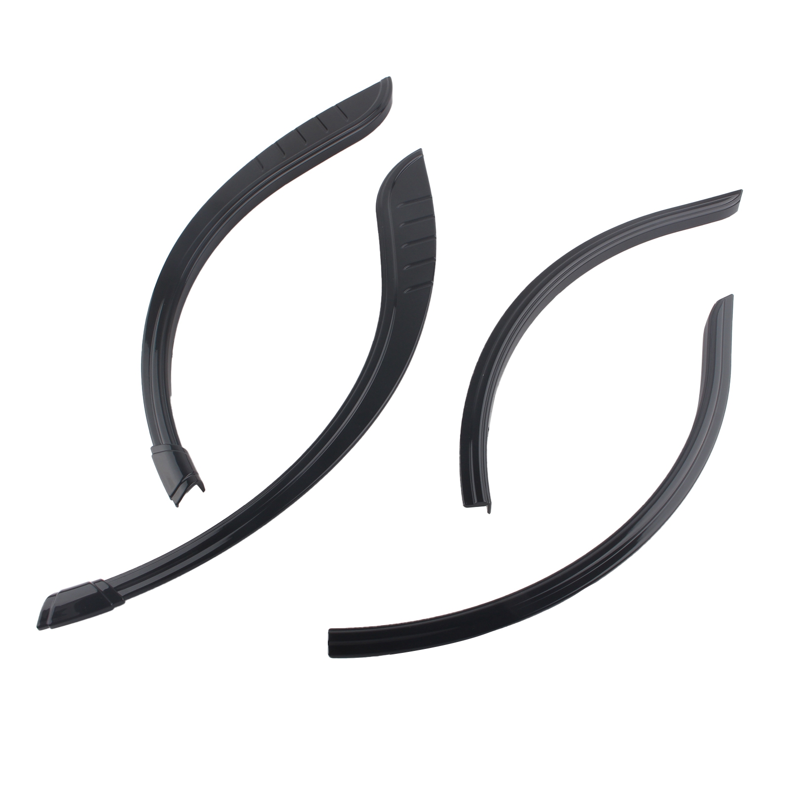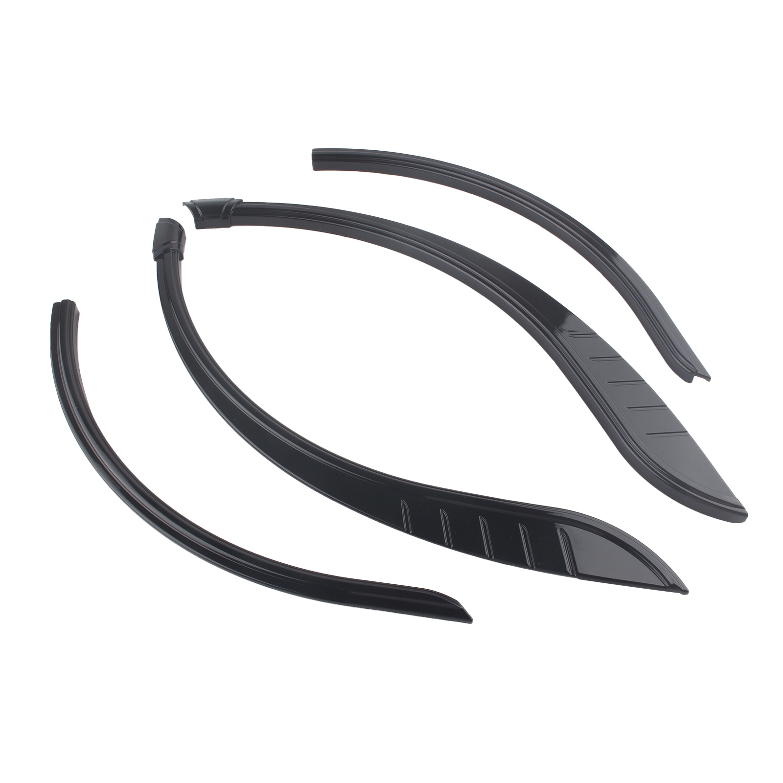 Provides two-piece fender flares that add three dimensional depth to an otherwise bland wheel opening on the stock motorcycle.