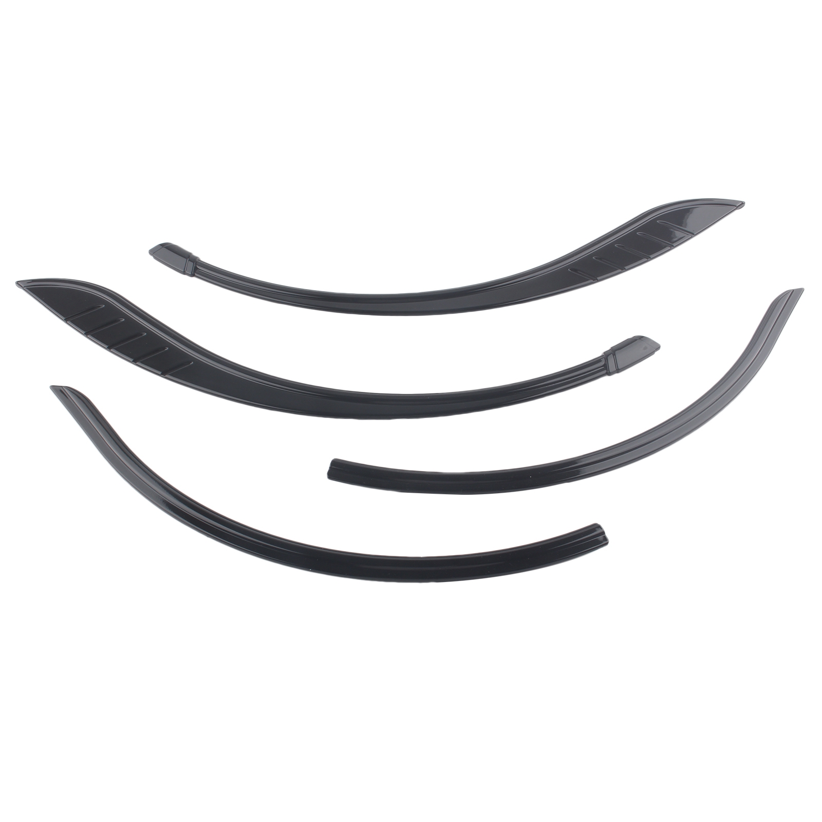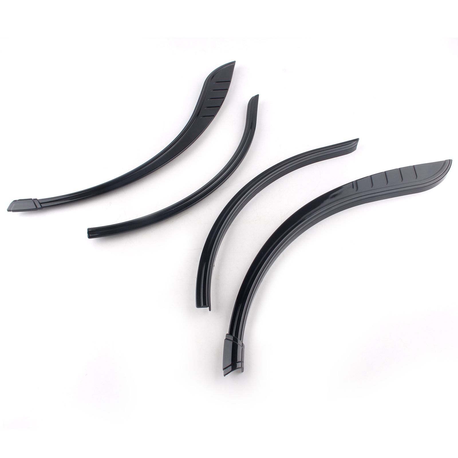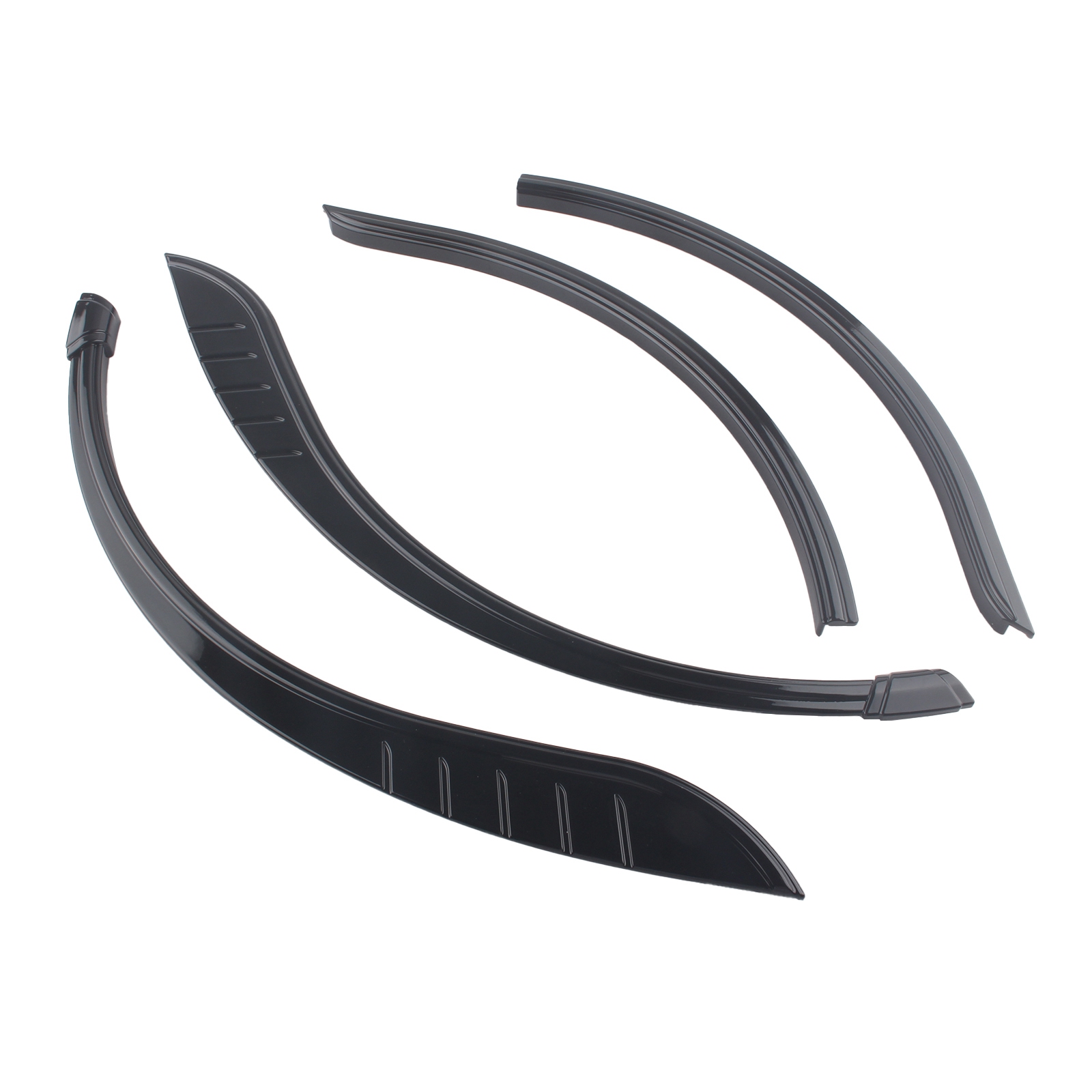 Provides two-piece fender flares that add three dimensional depth to an otherwise bland wheel opening on the stock motorcycle.