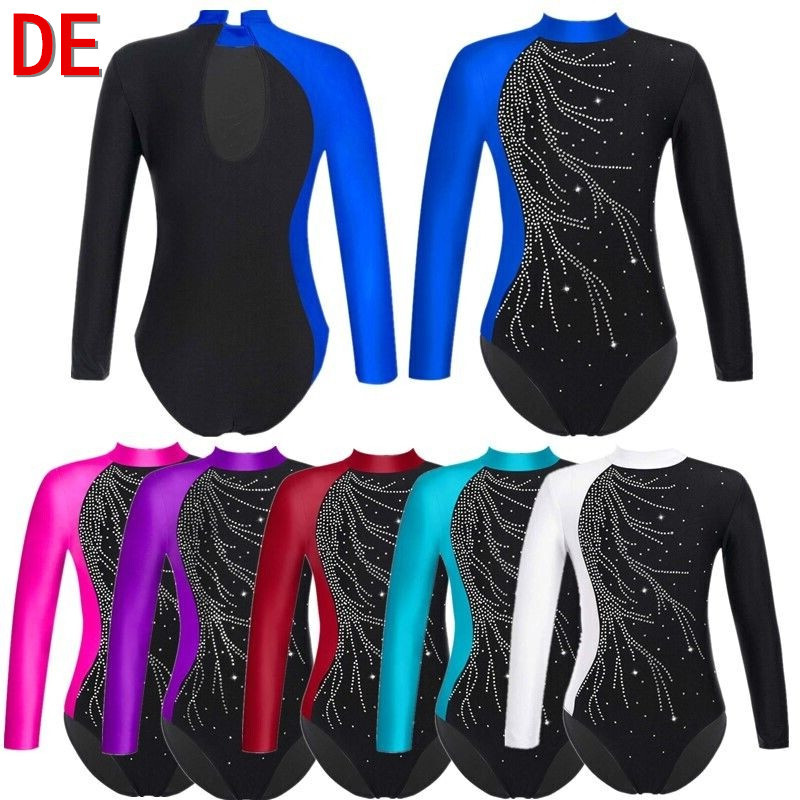 DE iEFiEL Mädchen Turnanzug Gymnastikanzug Leotard Langarm Kostüm Dancewear